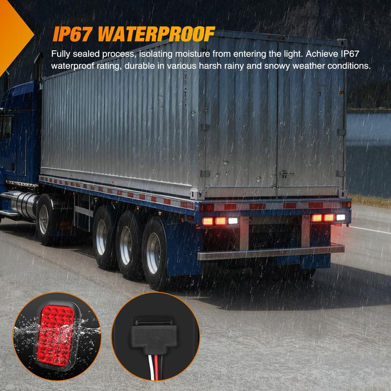 The entire light is sealed and waterproof, Isolating moisture. It can maintain the normal operation of the tail light well and ensure its service life.