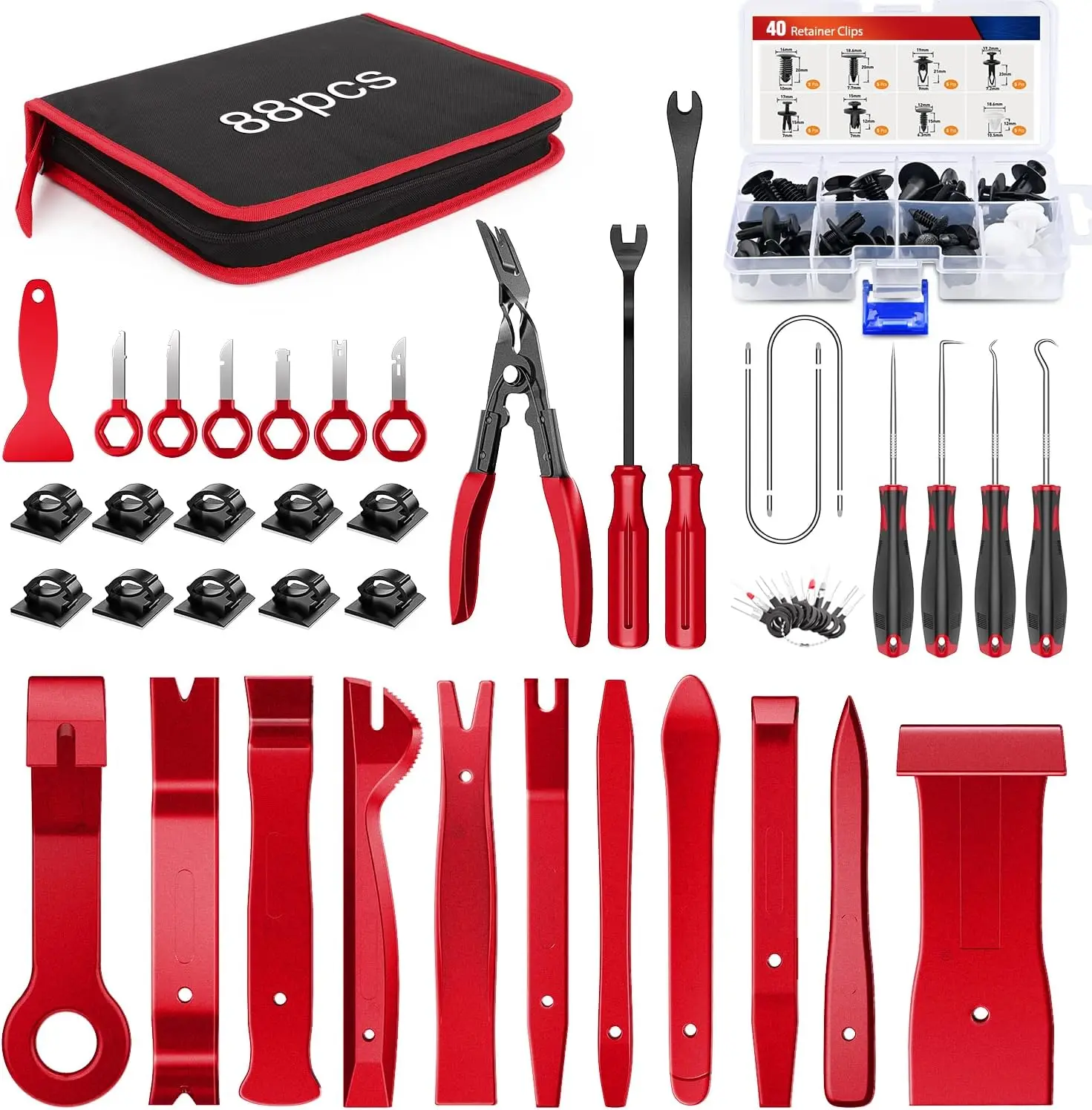 ·Package Include:Including 40Pcs of 8 sizes retainer clips, 48Pcs car trim tools with a portable bag