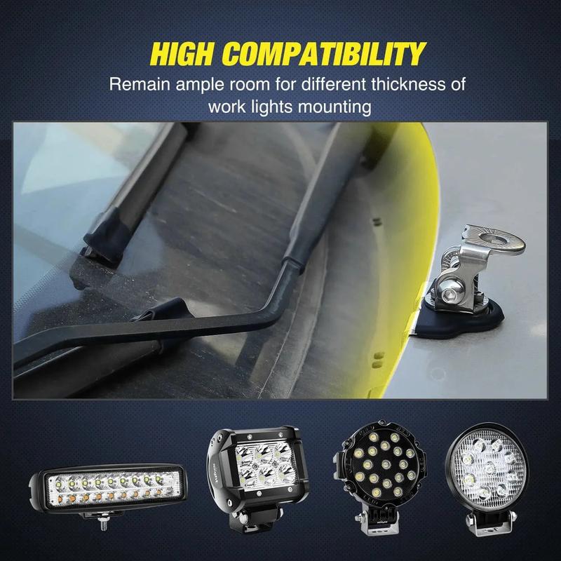 ·High Compatibility: Can used to mount different thicknesses of work lights, fog lights, driving lights, etc. Only the max limit of the clamp board thickness on the vehicle is within 8mm.