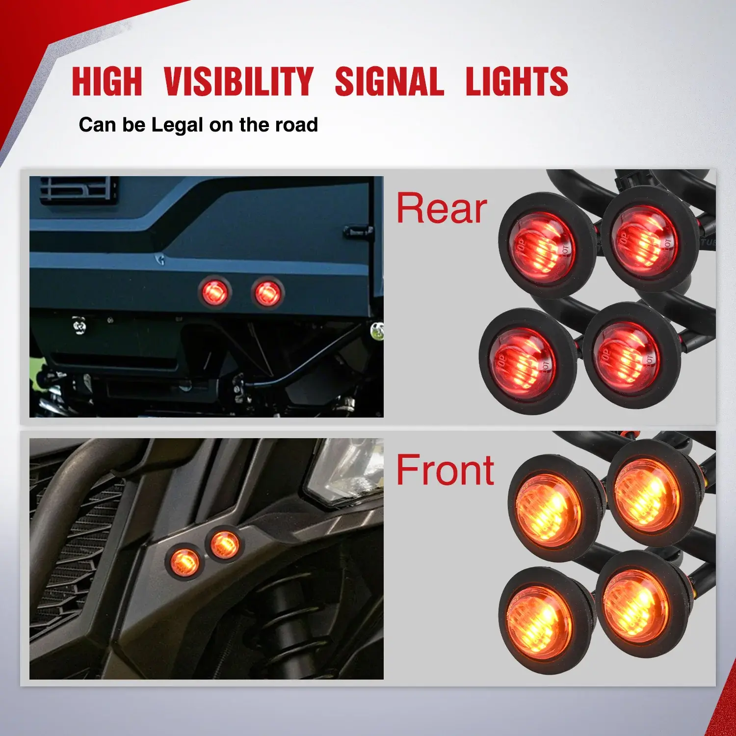 This UTV turn signal is made of high quality metal and ABS plastic, stable performance, safety, strong light penet ration, rain and fog can be seen.