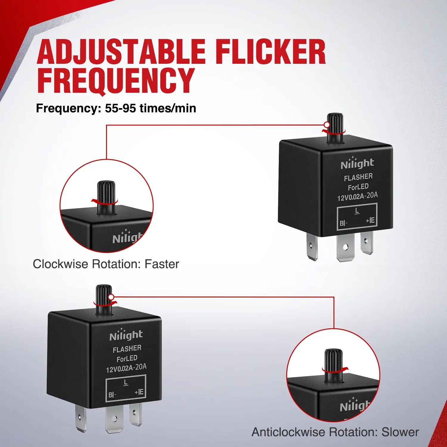 You can turn the knob at the top of the relay flasher to set your ideal flashing speed.