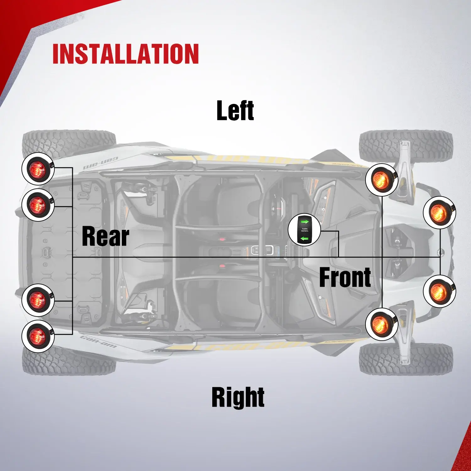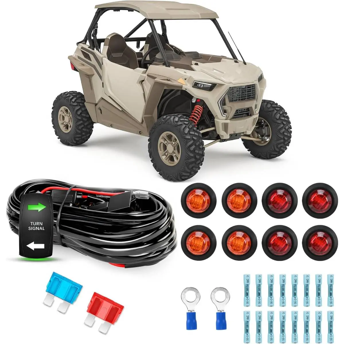 ·Compatibility: The UTV ATV Turn Signal Wiring Harness Kit is compatible with most UTV, ATV and side by side vehicles, which include Polaris RZR, Polaris Sportsman, Polaris Ranger, Yamaha Rhino, Yamaha Viking, Kawasaki Teryx, Can Am Commander, Honda Pioneer, Arctic Cat Wildcat, Golf Cart, dune buggy, or 4x4 project. Please check the model before ordering.