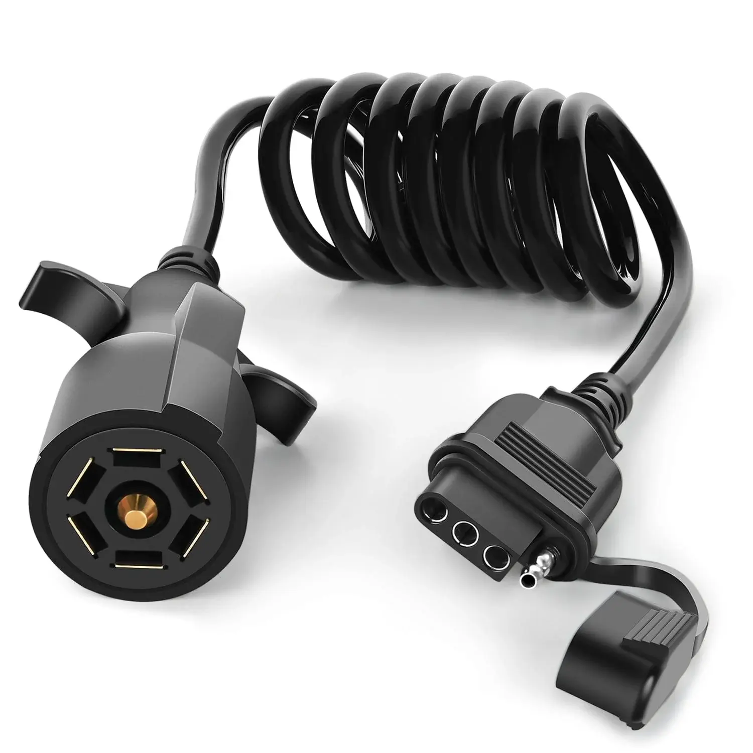·Easy to Install: Plug 7 blade into your existing 7-way receptacle and connect your existing 4-pin flat plug on your trailer to the other end of the 4-flat coiled cable. Easy installation, no splicing wire.