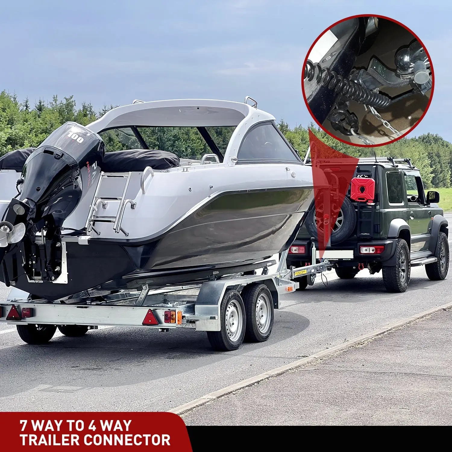 ·Stretchable Trailer Adapter Wiring: This adapter converts 7 way blade vehicle end to 4 way flat trailer end, makes connection between vehicle socket and trailer plug, provides sufficient space and flexibles. Transfers the power from the vehicle to trailer.