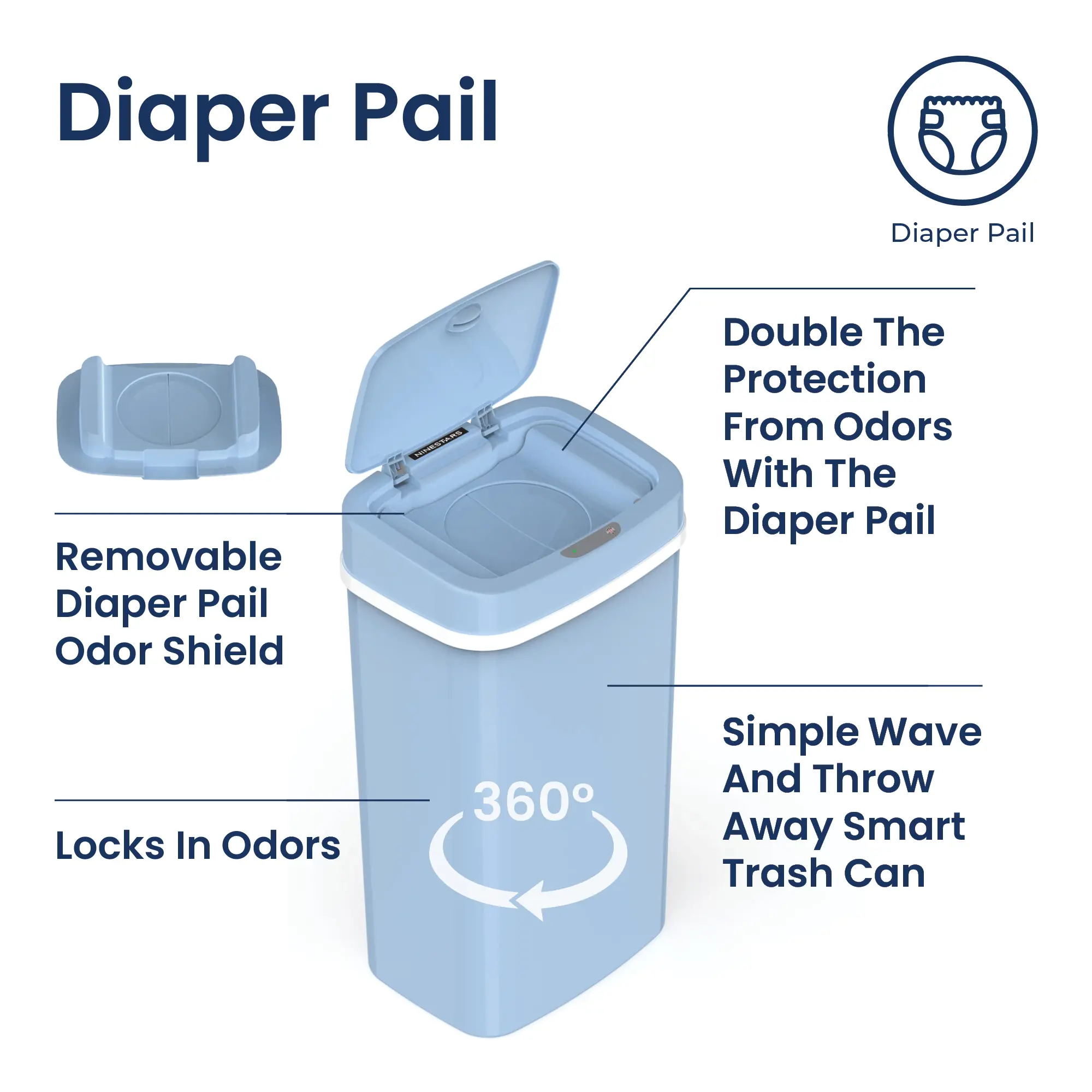 🌟 NINESTARS Diaper Pail Trash Can