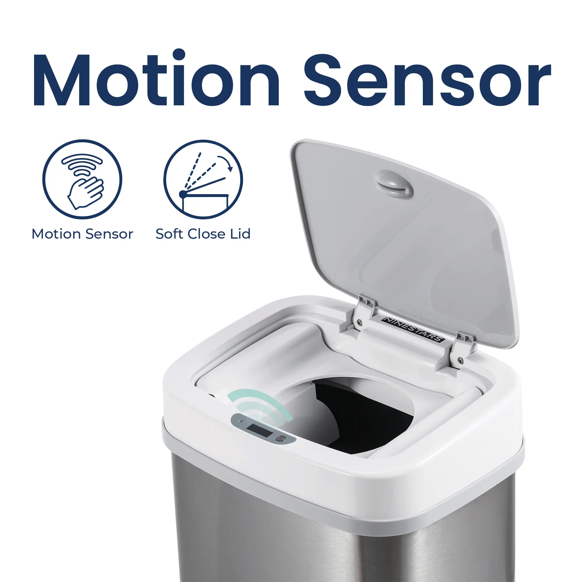 NINESTARS Motion Sensor Diaper Pail Trash Can, Double Order Locking Works with Regular Trash Bags, Automatically Open Trash Can for Baby's Room