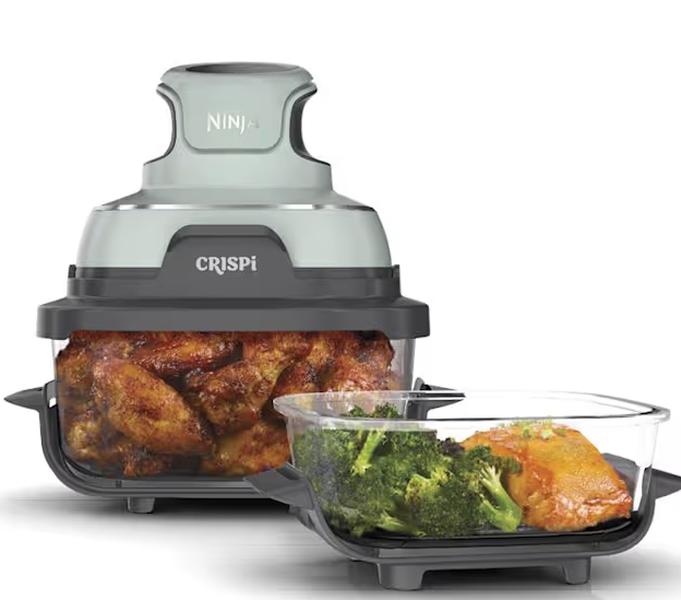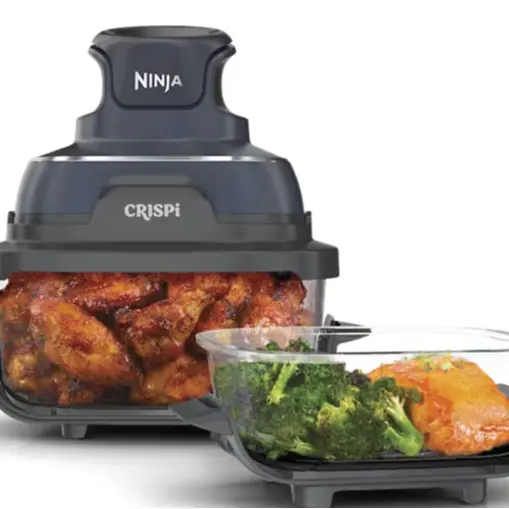 The Ninja Crispi Portable Glass Cooking System is a compact powerhouse that packs the 1500W power of a full-sized air fryer* into a portable design. It includes a small 6-cup and larger 4-qt CleanCrisp container. Whether you’re making quick, single-serve meals in just 7 minutes or sharing crispy snacks on the go, the Ninja Crispi makes it effortless. Designed for nontoxic cooking and storing without forever chemicals — PFAS and PTFE. All Crispi accessories are dishwasher safe and nestable for easy cleaning and storage. *Based on wattage compared to Ninja AF100