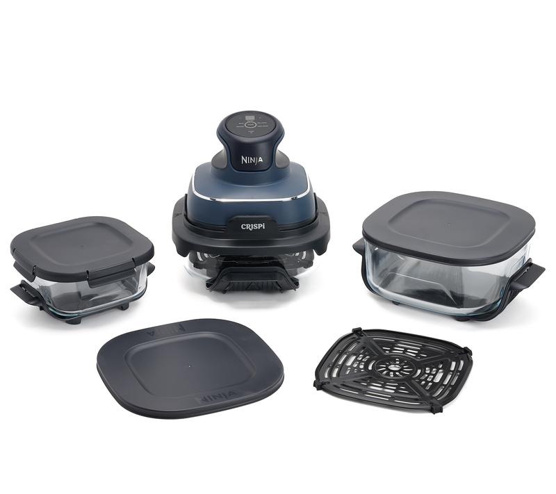 Ninja Crispi 5-in-1 Portable Glass Air Fryer Cooking System Packs the power of a full-sized air fryer into a portable design* It includes a 6-cup, 2.5-QT and 4-QT TempWare- containers Single-serve meals in 7min, crispy snacks on the go, or serving crowds Imported.