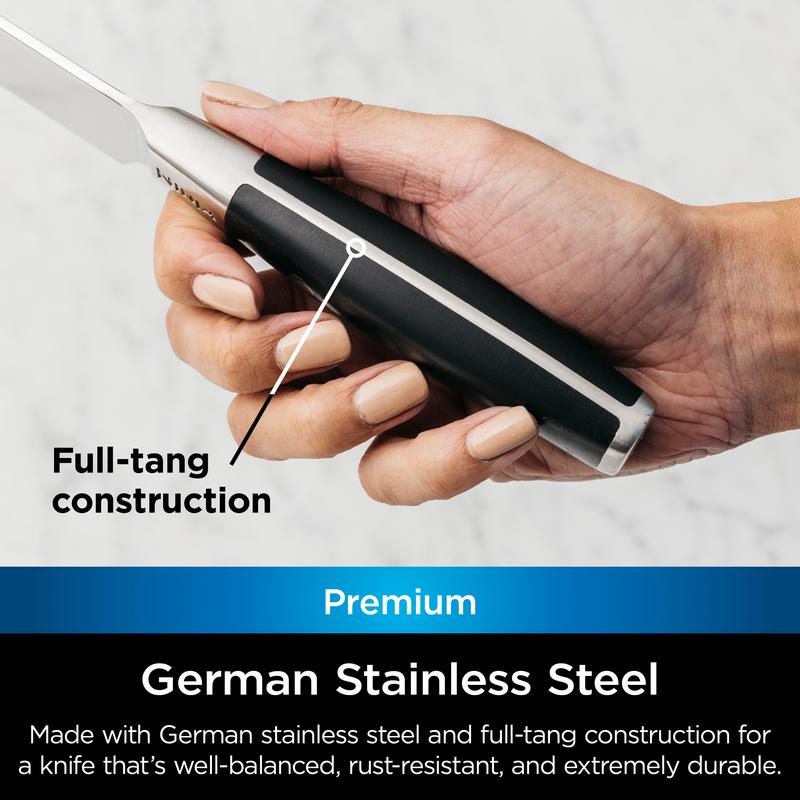 GERMAN STAINLESS STEEL: Premium blades forged from German stainless steel are rust-resistant and strong enough for all your kitchen tasks.