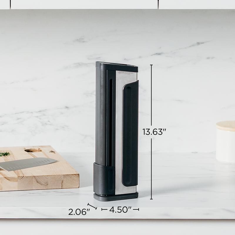 Introducing the Ninja NeverDull Premium Chef Knife & Sharpener that keeps your blade razor-sharp for over 10 years. With a few swipes of the foolproof sharpener, this convenient, easy to use system maintains the superior sharp edge you crave use-after-use.