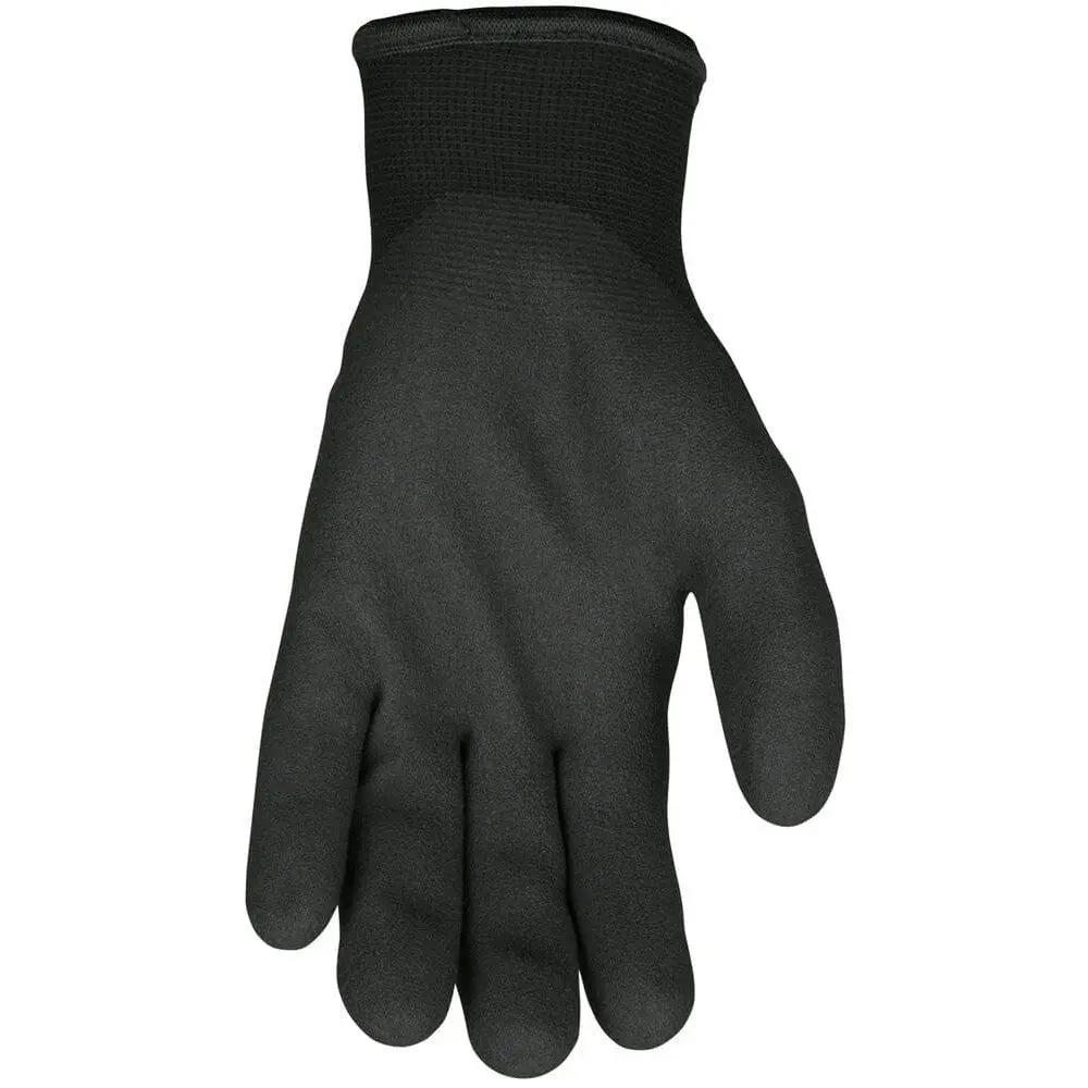 The MCR Safety Ninja Ice Insulated Work Glove is designed for extreme cold while providing a strong grip. It features a 15-gauge black nylon shell and a 7-gauge acrylic terry liner, making it ideal for cold storage applications such as commercial fishing, frozen food packaging, agriculture, and warehousing.