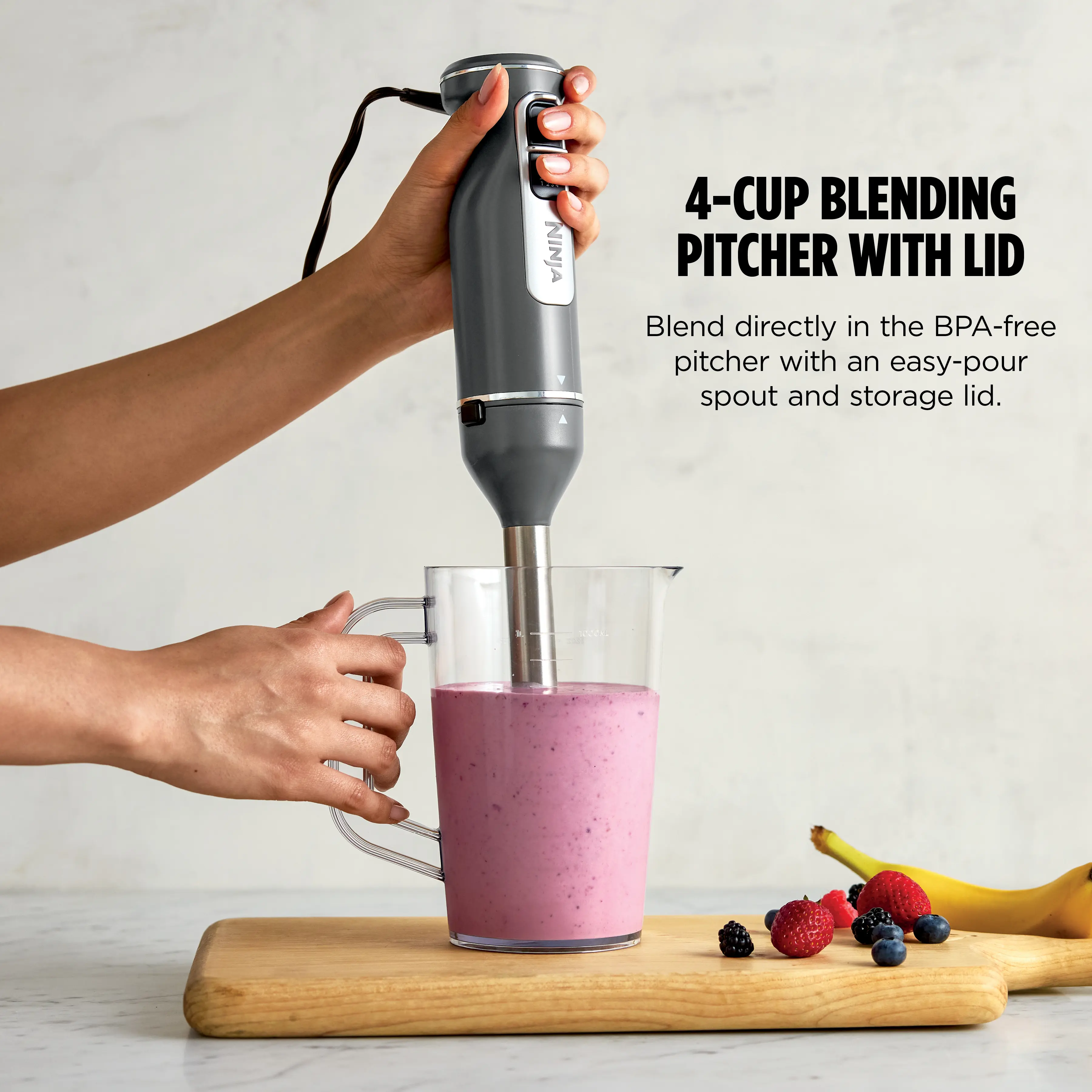 4-CUP BLENDING PITCHER: No countertop blender? No problem. Conveniently blend smoothies and frozen drinks in the 4-cup blending pitcher.