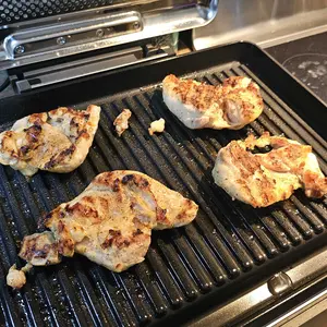 The Ninja indoor grill is awesome. So far I cooked chicken breast and asparagus for dinner and then hot dogs another day. Works great! Definitely recommend!