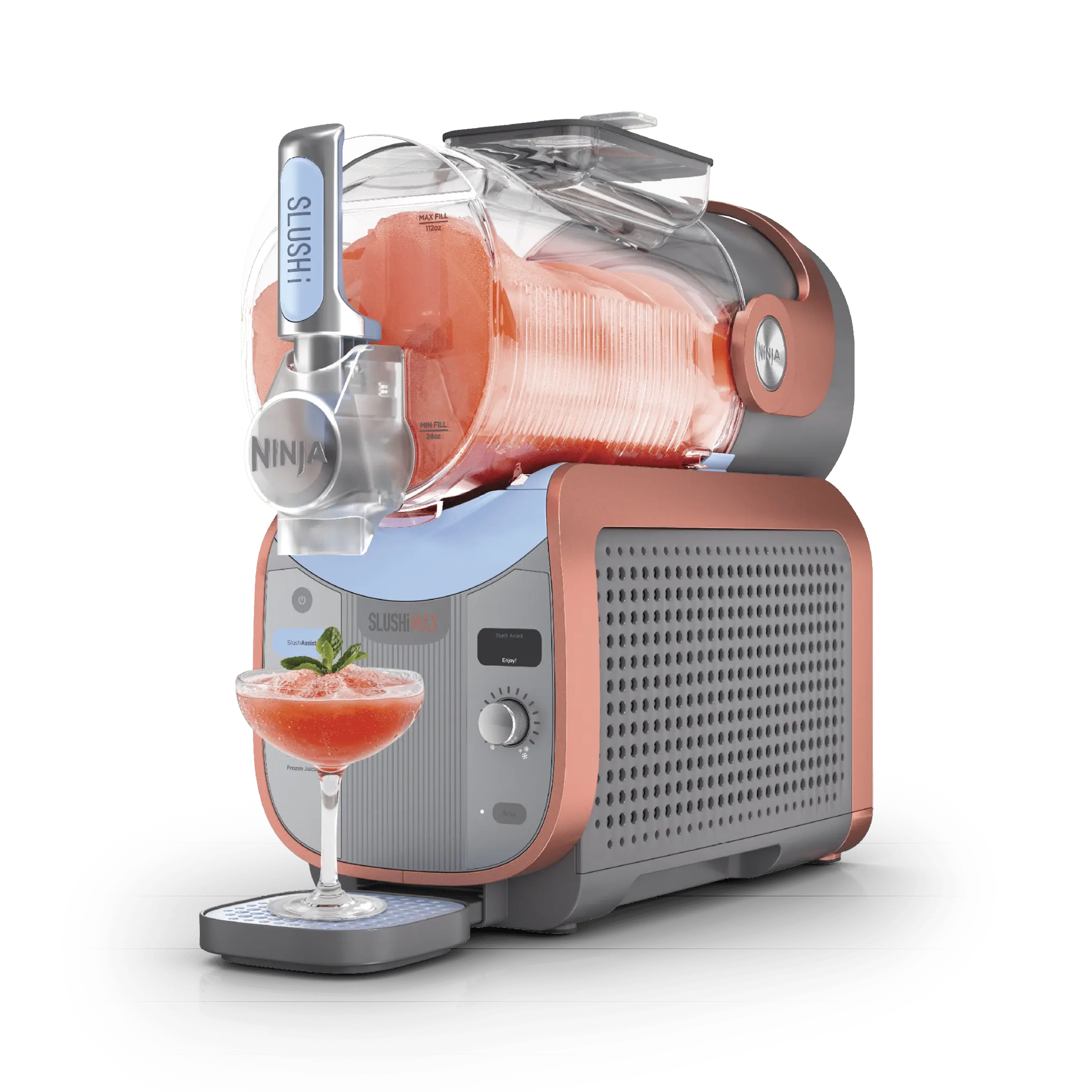 This is my 2nd Ninja Slushy Machine and in love. It freezes sooooo much faster than the original one. I don't have to make double batches everything fits in the machine. I used both machines to make my strawberry and pineapple flavored drinks. I have no complaints. Thank you Ninja 🤗