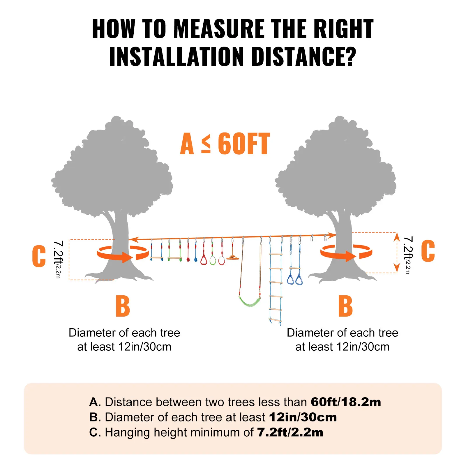 • Quick Installation and Disassembly: The outdoor playset equipment can be assembled in just 5 minutes. There's no need for a wide flat area in your yard; just fix it between two trees or poles 20 to 40 feet apart to start customizing your obstacle challenge game! It's an ideal alternative to traditional playgrounds, offering a convenient and flexible backyard challenge game for children of various ages and skill levels.