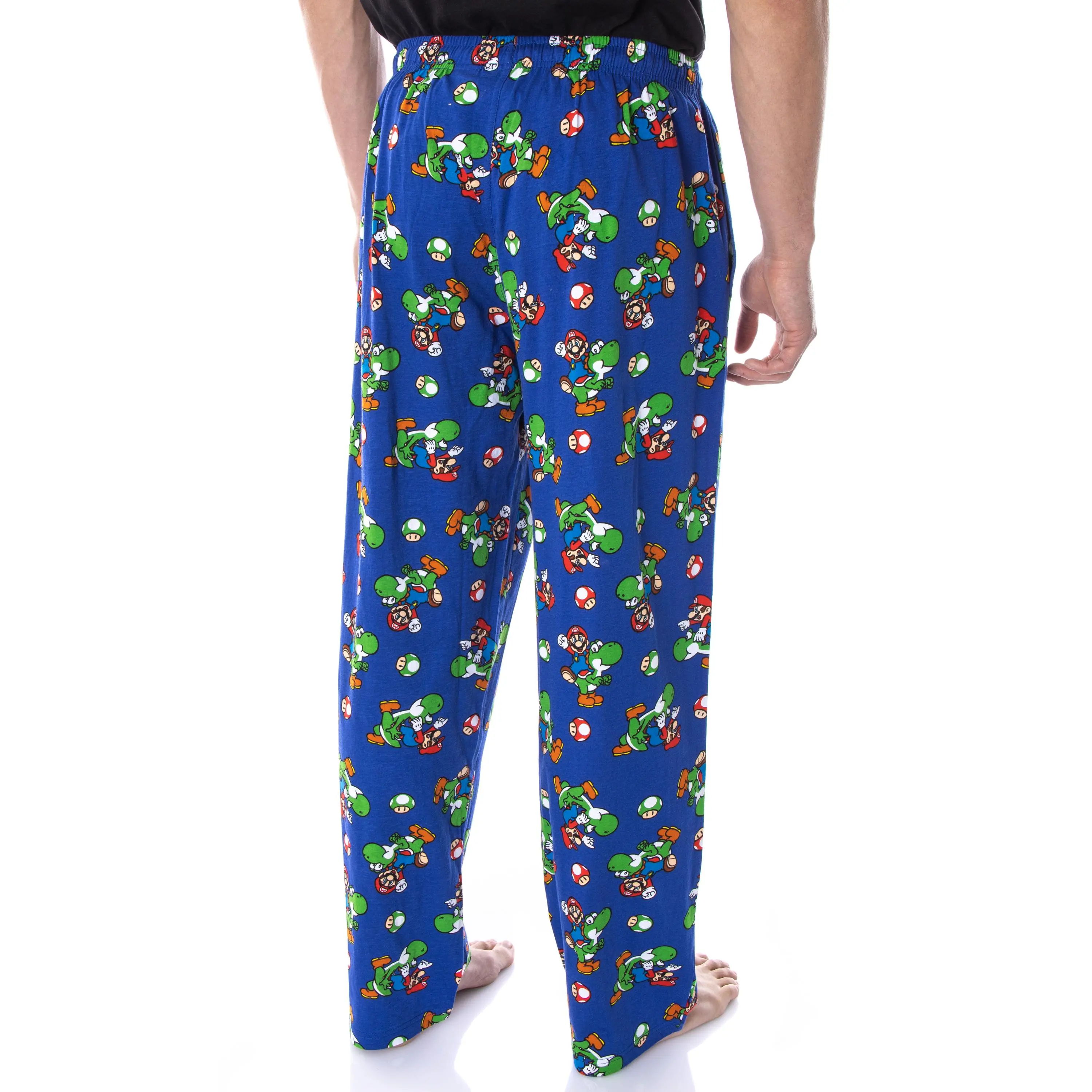 These are Mario and Yoshi Pajama Pants. Super Mario Brothers the video game series is one of the most recognized and beloved in the world! With games from the classic NES to the new Switch, Nintendo's favorite plumber Mario has become a worldwide legend. With your favorite characters like Mario, Luigi, Princess Peach, Toadstool, Donkey Kong, Yoshi and Bowser, the games have fans all over the world. These soft-touch fleece sleep pants feature Mario riding Yoshi, his favorite dinosaur with a cool allover design. Each lounge pant is made of ultra-soft cotton fabric that will have you wanting to wear them and snuggle up to a good movie or book every day! They feature a fat-lace drawstring closure made of super sturdy fabric that won't run. THESE MARIO PAJAMA PANTS ARE NINTENDO MERCHANDISE - The pajama pants were manufactured and designed with Nintendo's permission, so you know you are getting an awesome, great product! Manufactured by MJC International, a leader in pop funure sleepwear and apparel. MARIO AND YOSHI TOSS ALLOVER PATTERN - These sleep pants feature an all over pattern of Mario and Yoshi with red and green mushrooms to power up! SUPER SOFT-TOUCH PLUSH FEEL - These cotton plush pajama pants are made of a soft cotton fabric that keeps you extra comfy a warm. The waist features a drawstring closure to allow you to adjust the fit at your waistline. The pants also feature soft pockets because every PJ pant should have pockets for your cell phone and keys. They will have you longing to get back home and snuggle up to your favorite movie, television show, or book! great GIFT FOR ANY OCCASION - Magnificent design for everyday use. The plush pajama sleep pants are designed with true fans of Nintendo video games in mind. It makes a great gift for Birthdays, Christmas, Valentine's Day, Easter, Mother's Day, Father's Day or any other special occasion! In, fact it makes a great gift for YOURSELF, because you might be biggest fan of all! SIZING AND WASH INSTRUCTIONS - Listed in adult unisex sizes that can be worn by men or women. Our male model is 5 foot 10 and our female model is 5 foot 6 and they are both wearing a size small.