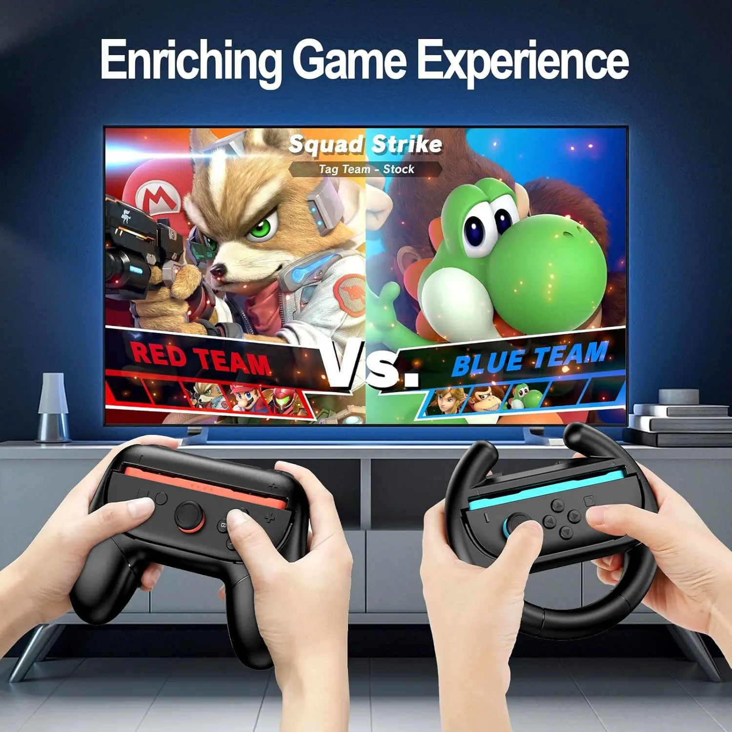 ·【Joycon Steering Wheels and Grips】Enjoy immersive racing games with our steering wheels and grips. They provide a realistic driving sensation, making every turn feel authentic. Lightweight and easy to attach, they ensure a comfortable and secure hold. Perfect for multiplayer sessions, these accessories let you share the fun with friends.