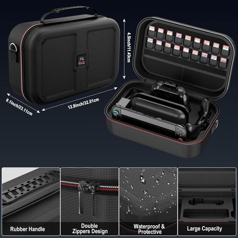 ·【Large Carry Case】Securely store your Nintendo Switch 2 and accessories with this robust carry case. It features a handy small mesh pocket for thumb grips and other tiny items, and holds up to 18 game cards, making it the ultimate travel companion for gamers. Its durable build ensures maximum protection during transit.