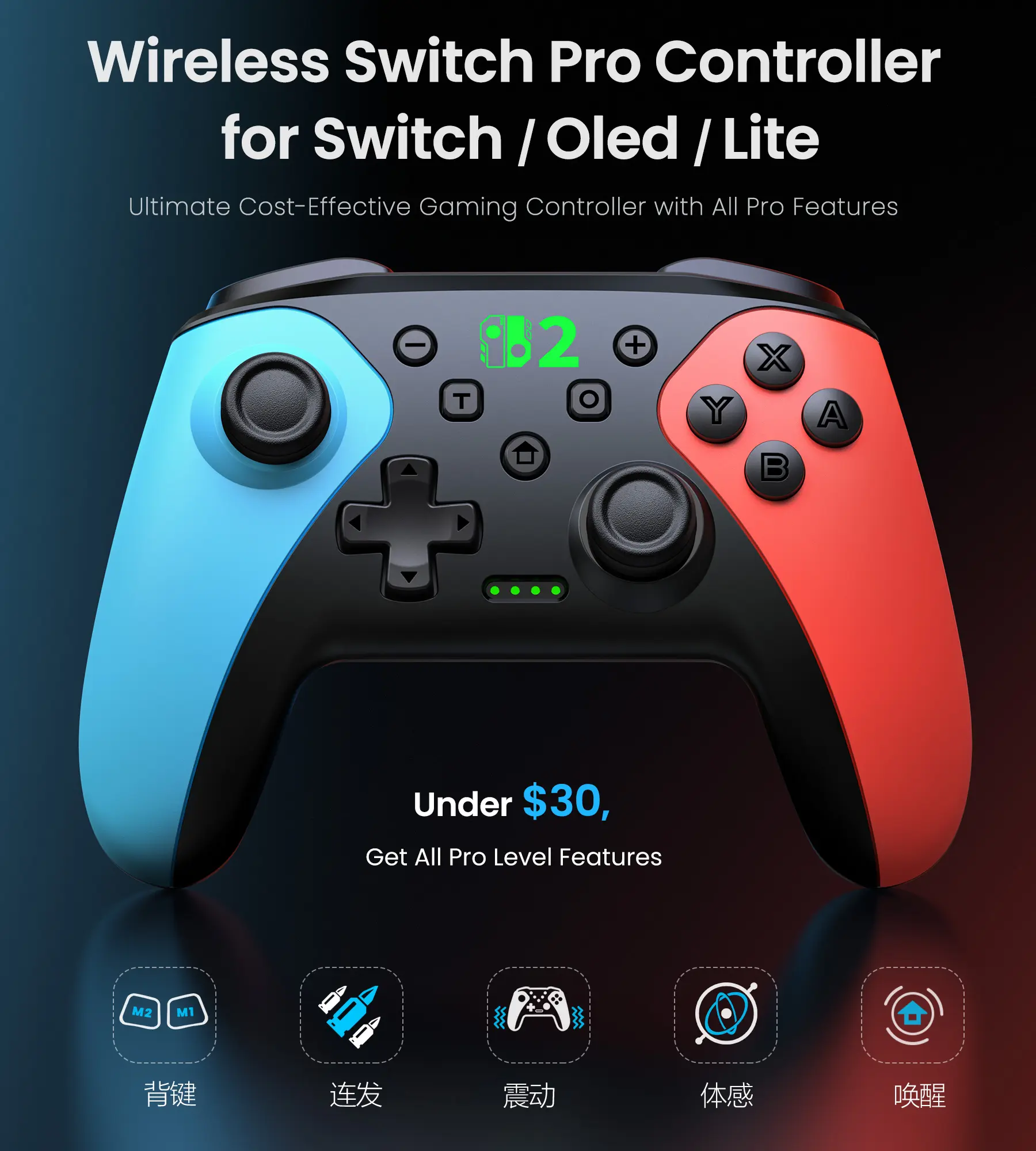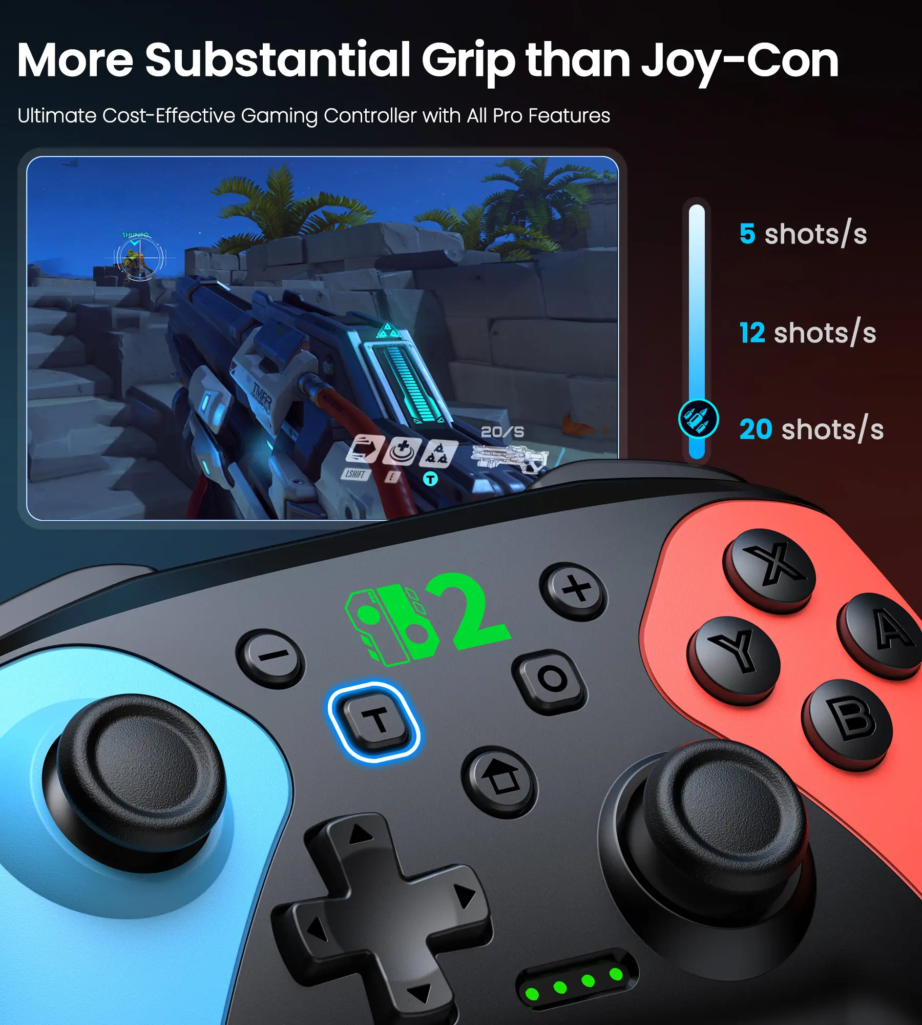【4-Level Vibration & 3-Speed Turbo Function】 This Switch Pro controller features four vibration modes (Off/Low/Medium/High) for a more immersive gaming experience.