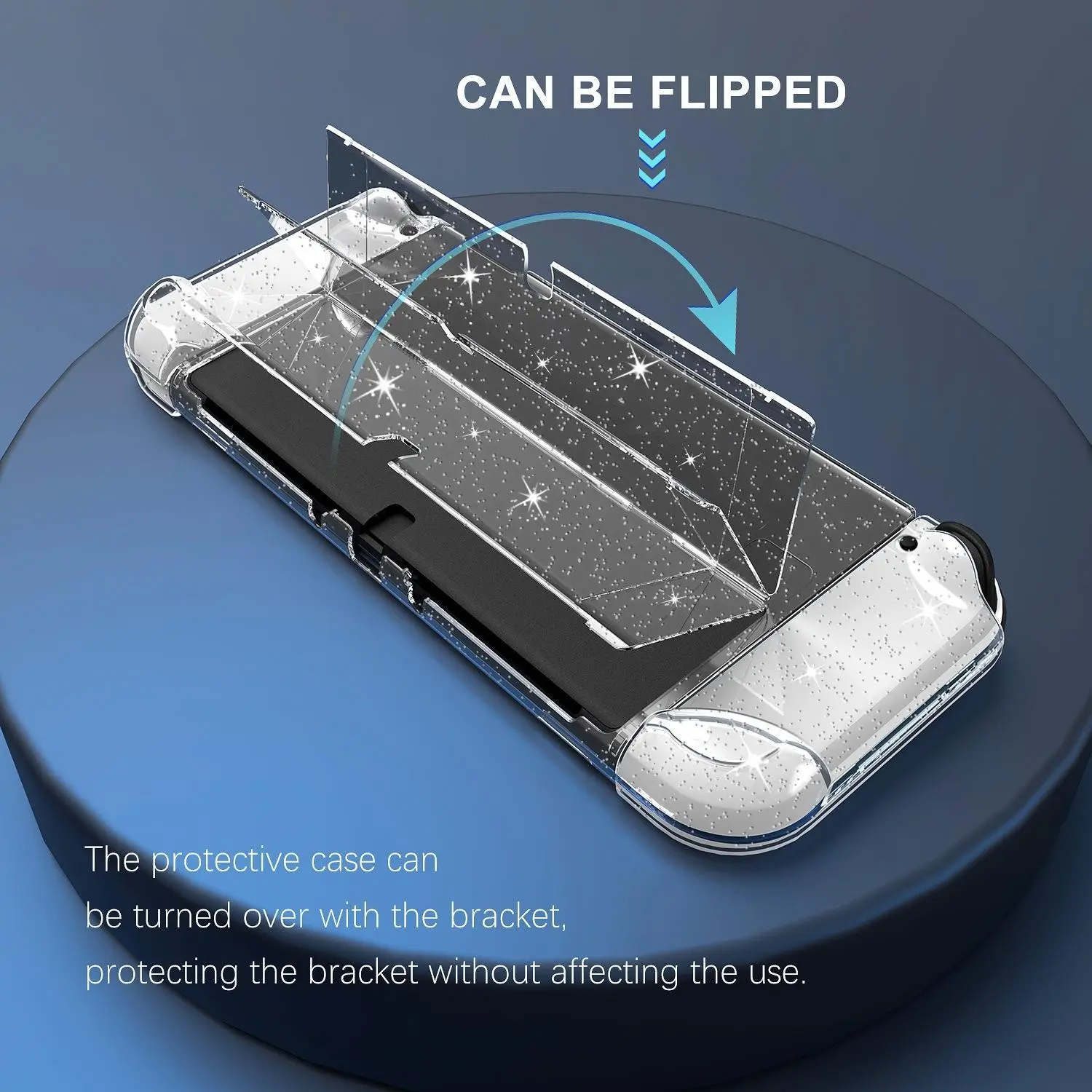 Glitter Aesthetic Nintendo Switch Protective Case with Stand & Pluggable Base, Shockproof Design, Durable Protection for Your Console