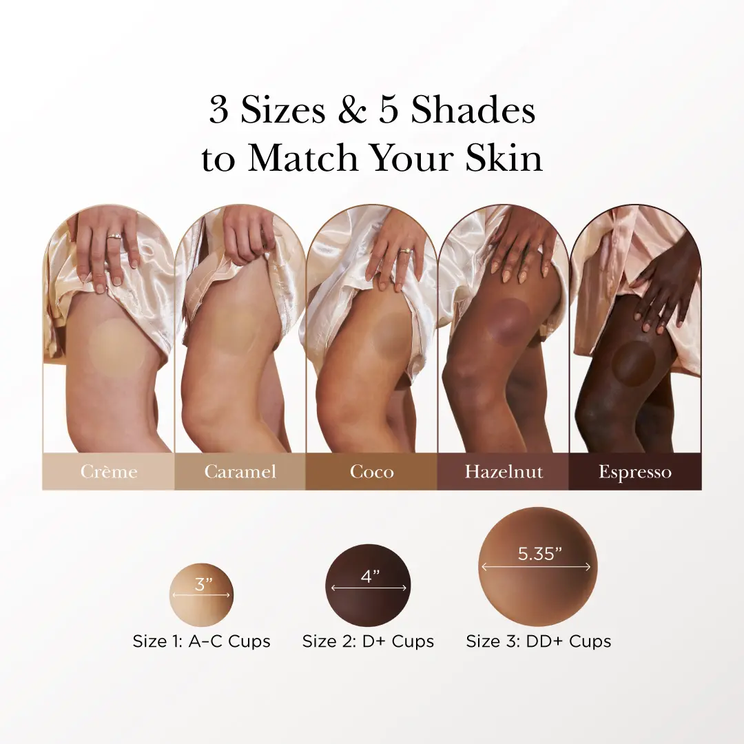 Size 1 is advertised for A-C cups but, coming from a C cup, I should’ve chosen size 2. The coverage is barely there, tbh. Additionally, one of the adhesives tore after 1 full day of usage. No, I was not being rough and I did not use my nails, but a small tear appeared after taking one of them off.