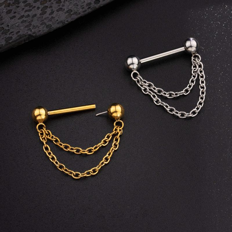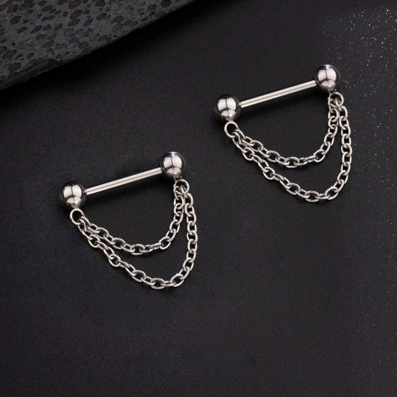 Oufer 14G Threadless Push Pin Double Chain Style Nipple Ring in 316L Stainless Steel Bold Aesthetic Dangle Design for Versatile Style