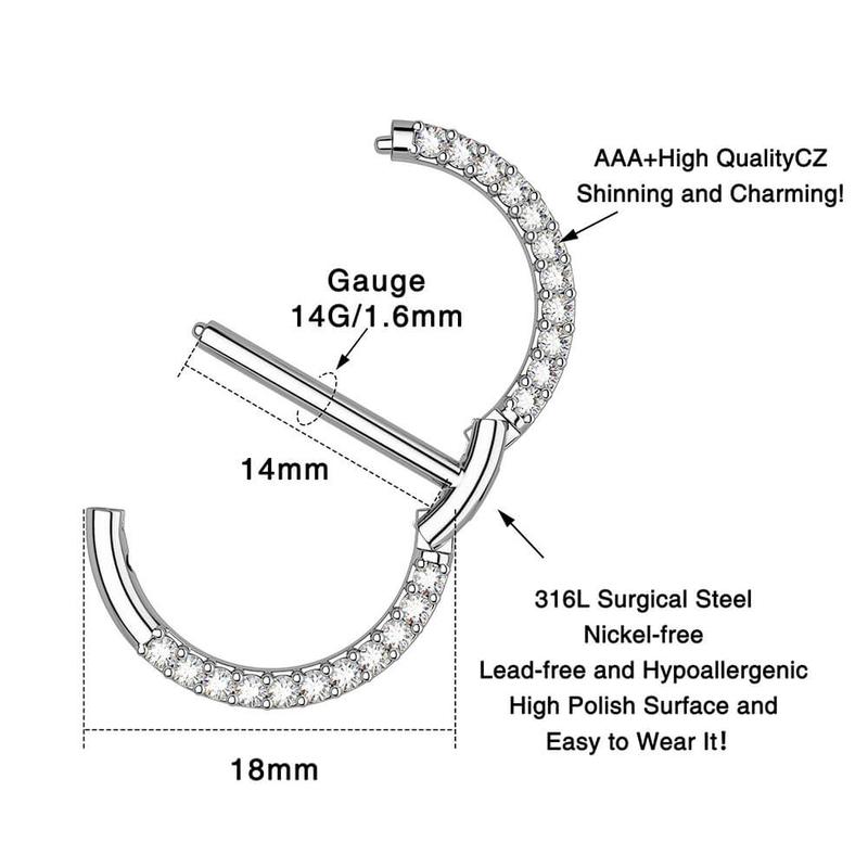 5. Oufer 14G Pair Circular CZ Clicker Nipple Shield Jewelry 316L Stainless Steel