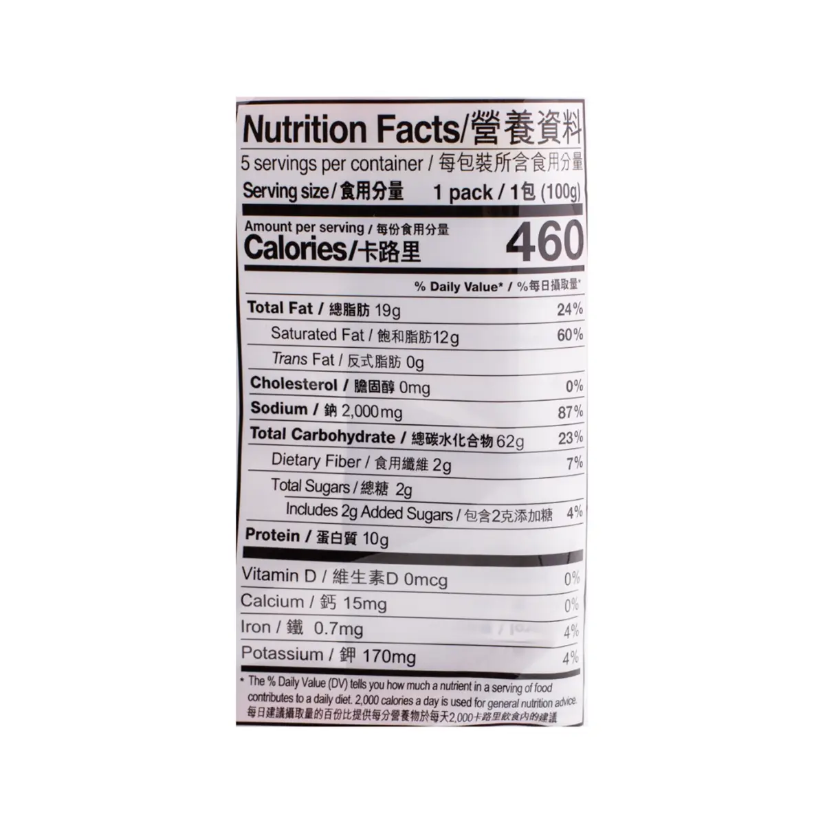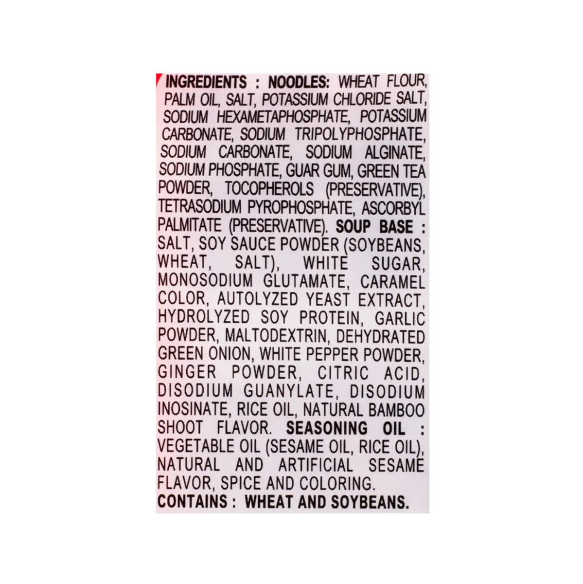 Nissin Demae Ramen, Sesame Oil Flavor is very delicious and deeply loved by many people. The noodles are made from high-quality wheat flour that are smooth and elastic. Buy Nissin Demae Ramen, Sesame Oil Flavor, go to Weee!-the Largest Asian & Hispanic Grocery Store in North America.↵↵Nissin Demae Ramen, Sesame Oil Flavor Ingredients:↵↵Noodles: Wheat Flour, Palm Oil, Salt, Acidity Regulator (452, 501, 451, 500, 339, 450), Potassium Chloride, Thickener (401, 412), Antioxidant (307b, 304), Green Tea Powder.↵↵Soup Base: Salt, Flavor Enhancer (621, 635), Soya Sauce Powder (Soya Beans, Wheat, Salt), White Sugar, Color (150a), Yeast Extracts, Hydrolysed Soya Protein, Garlic Powder, Spices, Dehydrated Green Onion, Flavor and Flavoring (Chicken, Pork), Acidity Regulator (330), Rice Oil, Onion Powder.↵↵Seasoning Oil: Sesame Oil (0.8%), Rice Oil, Flavor and Flavoring, Color (160b), Spices.↵↵Allergens: This product contains soya beans, cereals containing gluten and their products.↵↵Nissin Demae Ramen, Sesame Oil Flavor Nutrition Facts:↵↵Servings Per Container: 5↵↵Serving Size: 1 pack (100g)↵↵Amount Per Serving: Calories 460, Total Fat 19g (24% DV), Saturated Fat 12g (60% DV), Trans Fat 0g, Cholesterol 0mg (0% DV), Sodium 2,000mg (87% DV), Total Carbohydrate 62g (23% DV), Dietary Fiber 2g (7% DV), Total Sugars 2g (Includes 2g Added Sugars (4% DV)), Protein 10g, Vitamin D 0mcg (0% DV), Calcium 15mg (0% DV), Iron 0.7mg (4% DV), Potassium 170mg (4% DV).↵↵The % Daily Value (DV) tells you how much a nutrient in a serving of food contributes to a daily diet. 2,000 calories a day is used for general nutrition advice.↵↵How to Store?↵↵Please store in a cool and dry place, and avoid direct sunlight.↵↵Cooking Direction:↵↵Add noodles into 500ml of boiling water and cook for 3 minutes. Add soup base into bowl in advance.↵⇥Remove from heat. Pour hot water into bowl to melt soup base, then add noodles and stir.↵⇥Finally, add sesame oil and serve.↵Disclaimer↵↵Product packaging, specifications and price are subject to change without notice. All information about the products on our website is provided for information purposes only. Please always read labels, warnings and directions provided with the product before use.↵↵