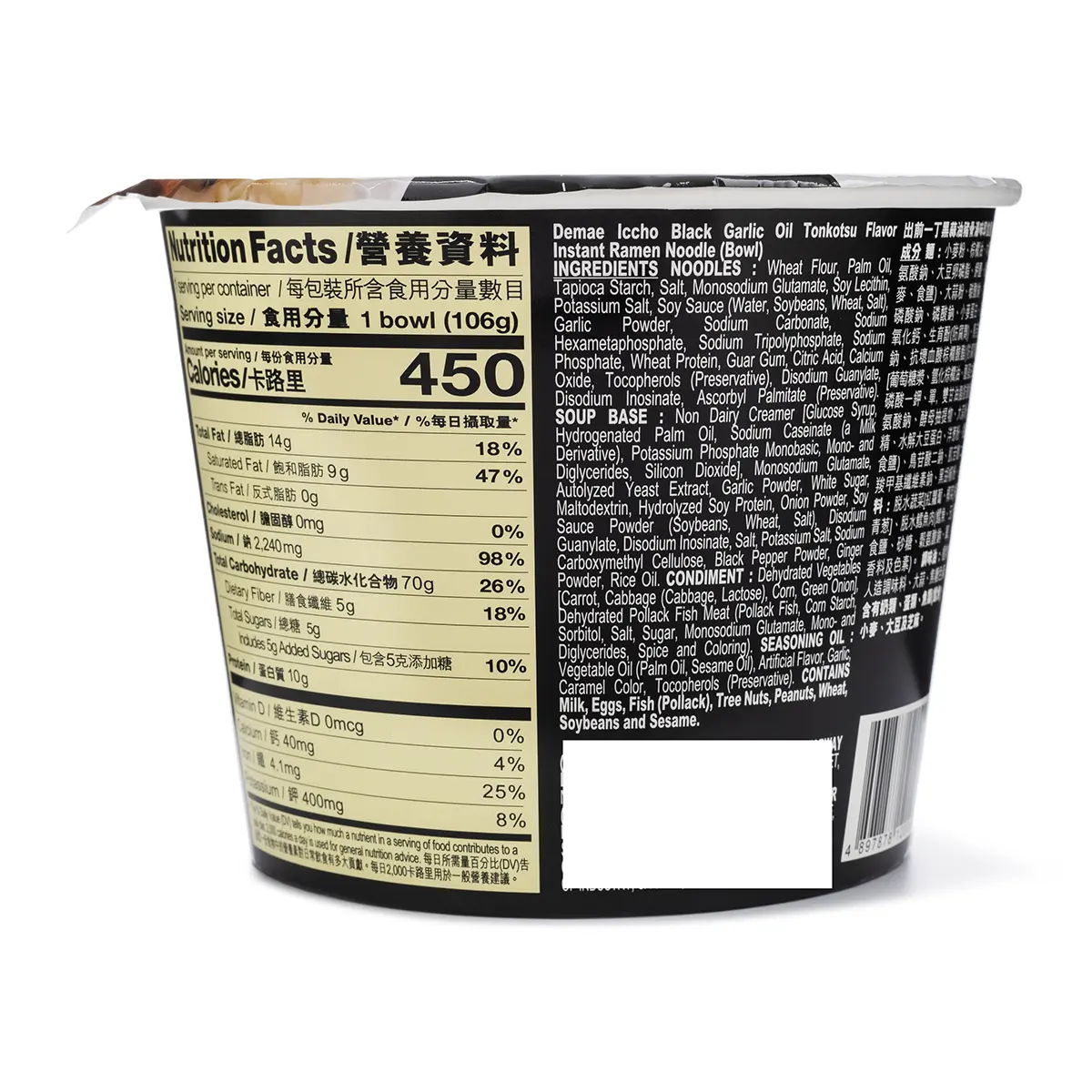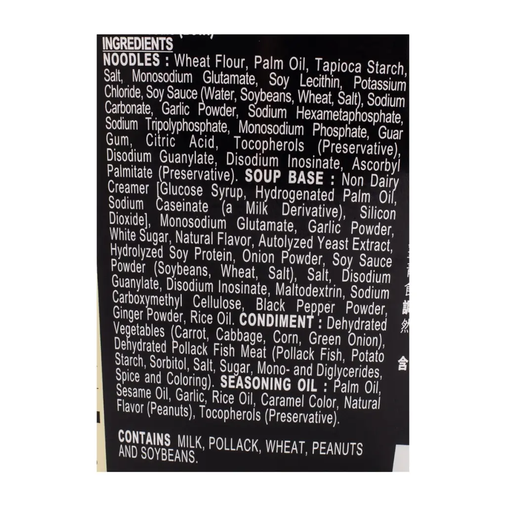 Nissin Instant Ramen Noodle, Black Garlic Oil Tonkotsu Flavor Nutrition Facts: