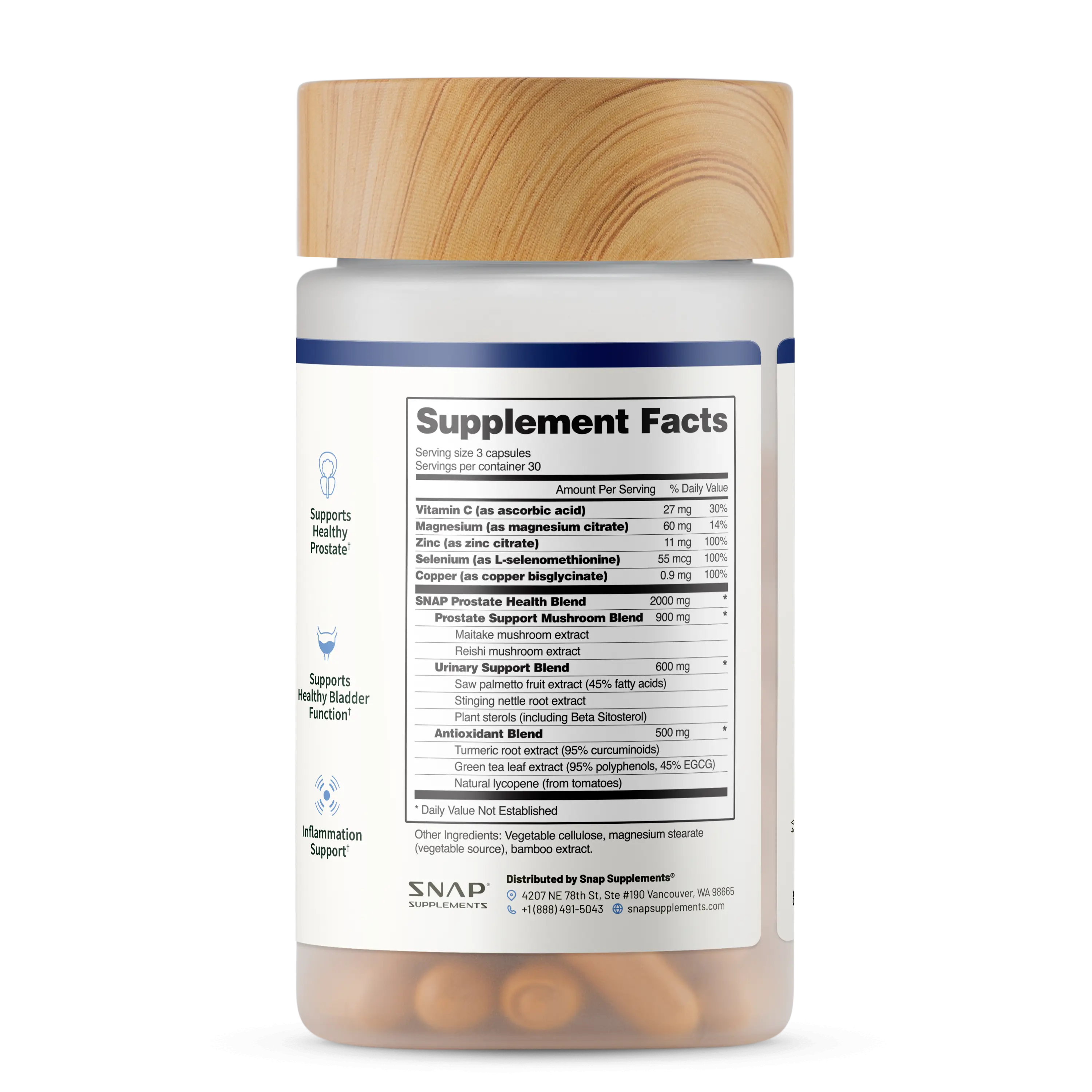 Directions For Prostate Health: Take 3 capsules daily with food or as advised by a health professional.