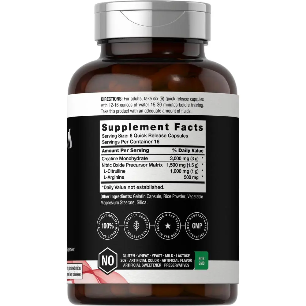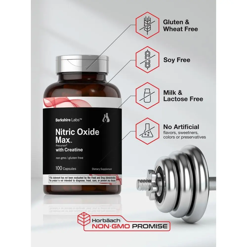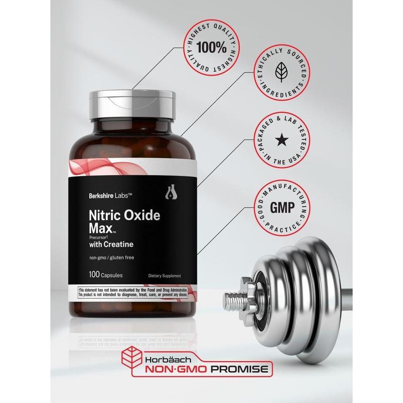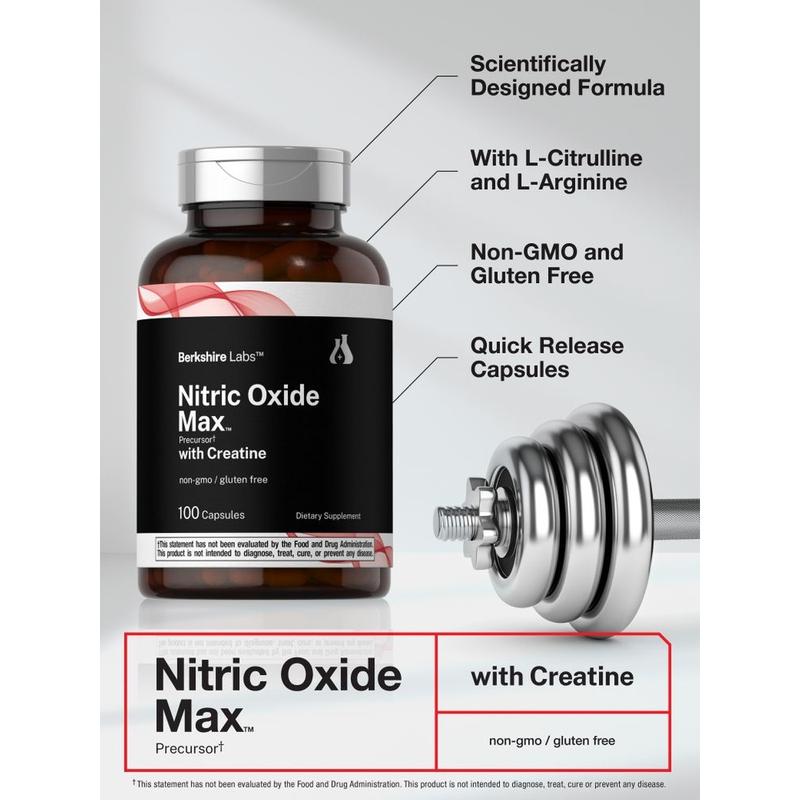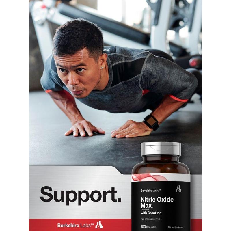 At Berkshire Labs, quick release capsules deliver 1,500 mg of a Nitric Oxide Precursor Matrix which feature 1,000 mg of L-Citrulline and 500 mg of L-Arginine per serving, plus Creatine Monohydrate for added support. It's gluten free and non-GMO, made with no artificial flavor, sweetener, or preservatives, making it a top supplement of choice for men and women looking to boost their routine.