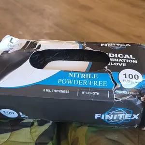 The boxes that the gloves were in came in damaged due to mishandling during shipping. Have to take the gloves out and put them in ziplock bags