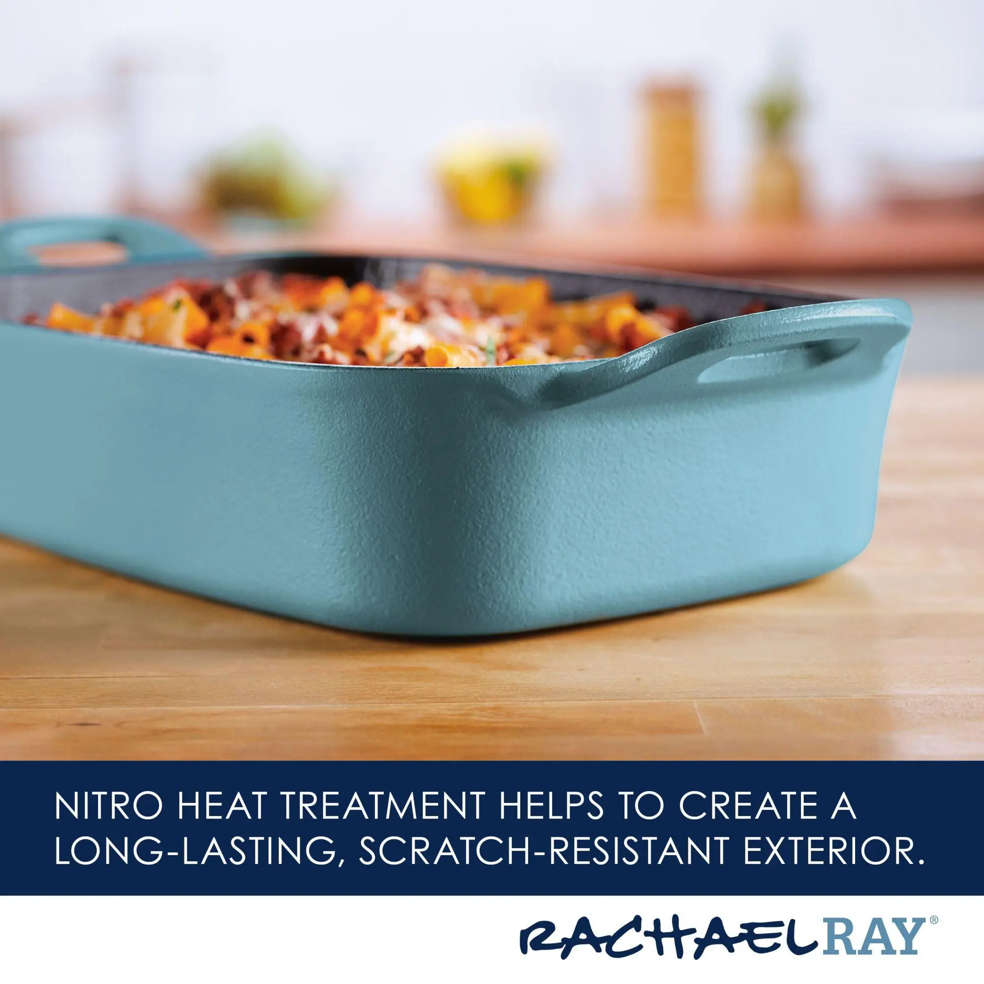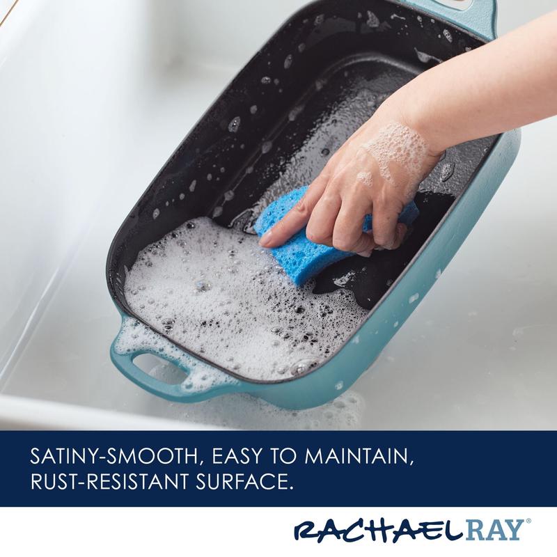 Meet your new kitchen hero! Get incredible cast iron performance that's easy to maintain with this Rachael Ray NITRO Cast Iron Roasting Pan that delivers the classic durability and performance of cast iron without the hassle of complicated cleaning, making this 9-inch x 13-inch meal maker ideal for use as a lasagna pan, casserole pan, or roaster. A next-generation nitro heat treatment seals and smooths surfaces for amazing, easy-to-use, easy-to-clean cast iron that's fortified to resist rust, chipping, and staining but still holds brilliant colors to complement any kitchen style. Oven safe to a ripping 500°F, induction capable and made to last a lifetime (and look great for a lifetime, too), this durable cast iron roasting pan is pre-seasoned and ready to deliver. See why cast iron is one of Rachael's favorite ways to make meals even more delish.
