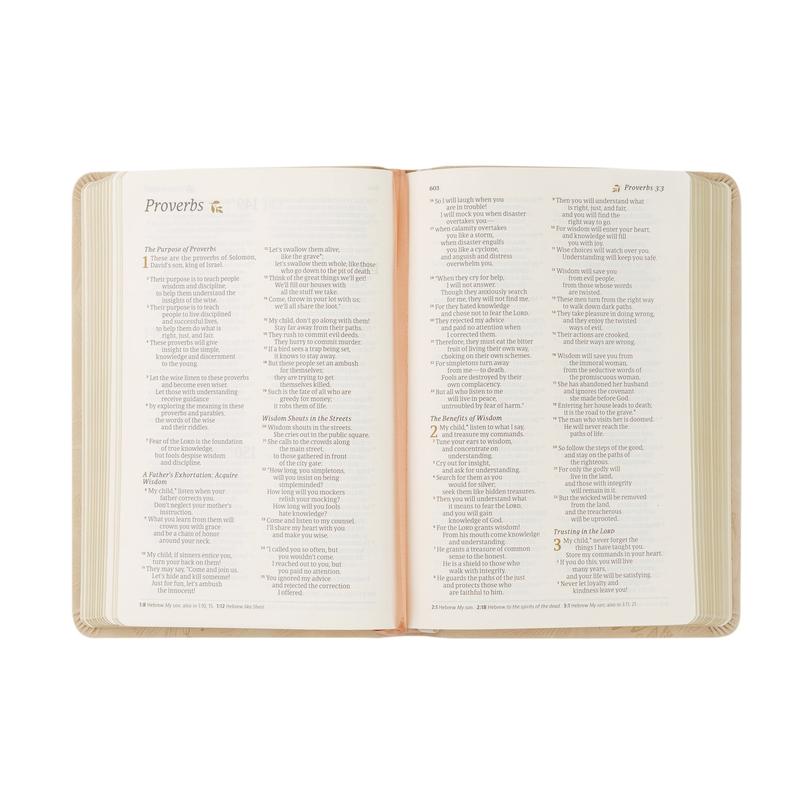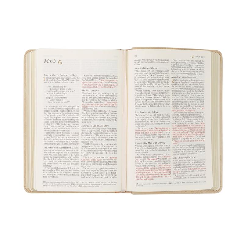 This Bible is so lovely. Itās the perfect size for easy transport, without being too small to read. The design is simple, elegant, and beautiful.
