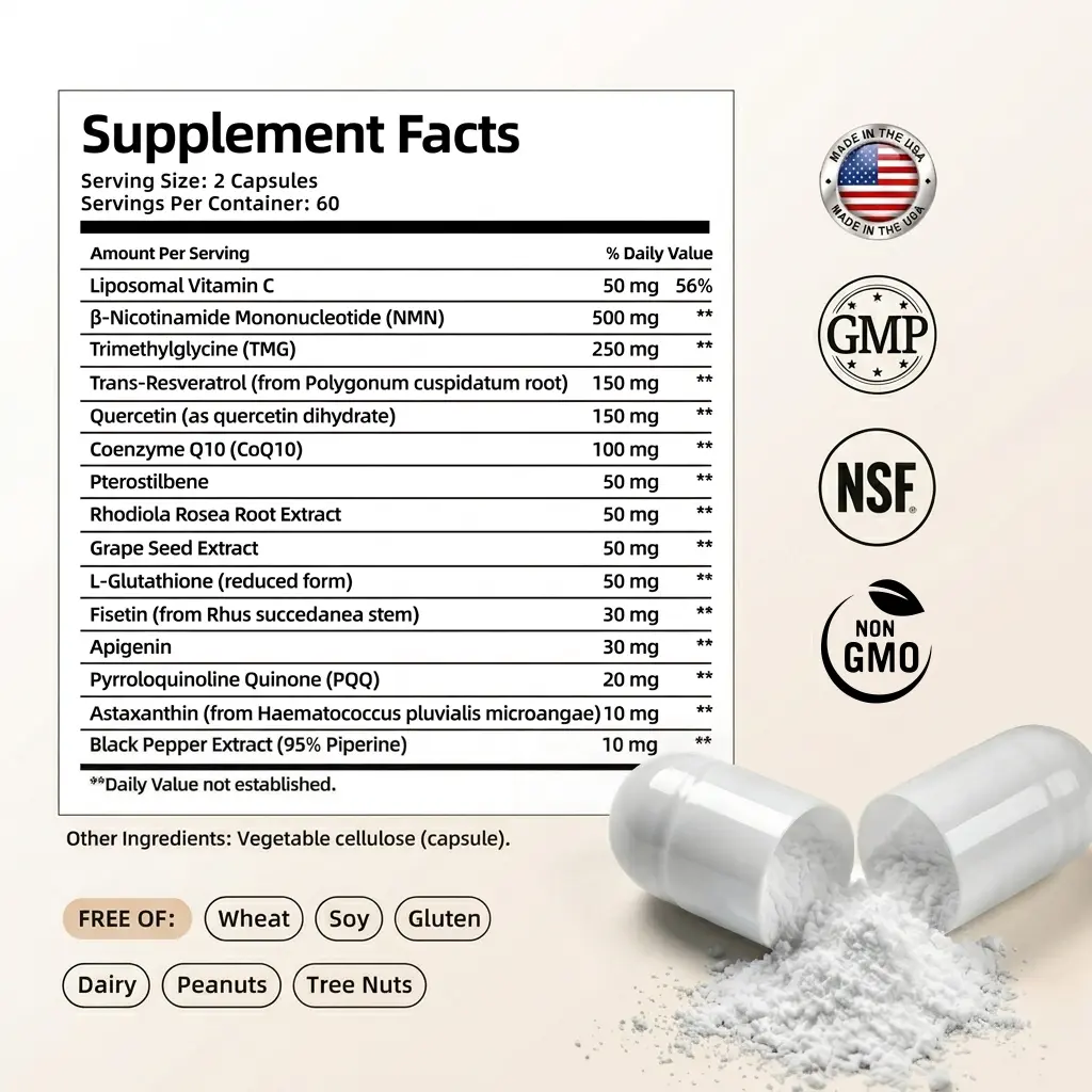 Nicotinamide Mononucleotide,NMN,Resveratrol,TMG,CoQ10,Vitamin C