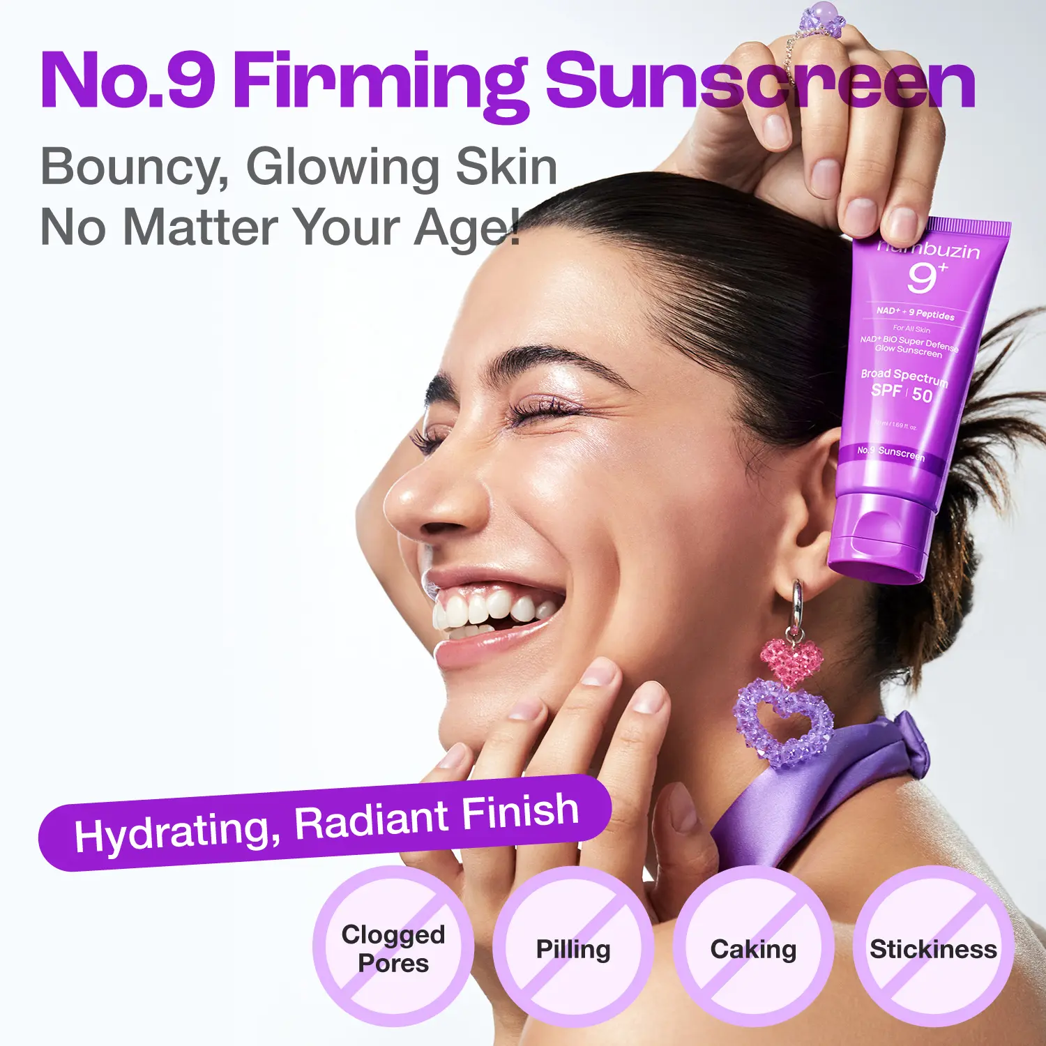 No.9 Sunscreen is specially formulated to boost elasticity and prevent signs of aging. Powered by firming ingredients like NAD+, 9 types of peptides, and collagen, it’s clinically proven to help prevent three key signs of UV-induced aging: loss of elasticity, sagging, and wrinkles. It also helps soothe heat-induced irritation and repair sun-damaged skin barriers for healthier, more resilient skin.