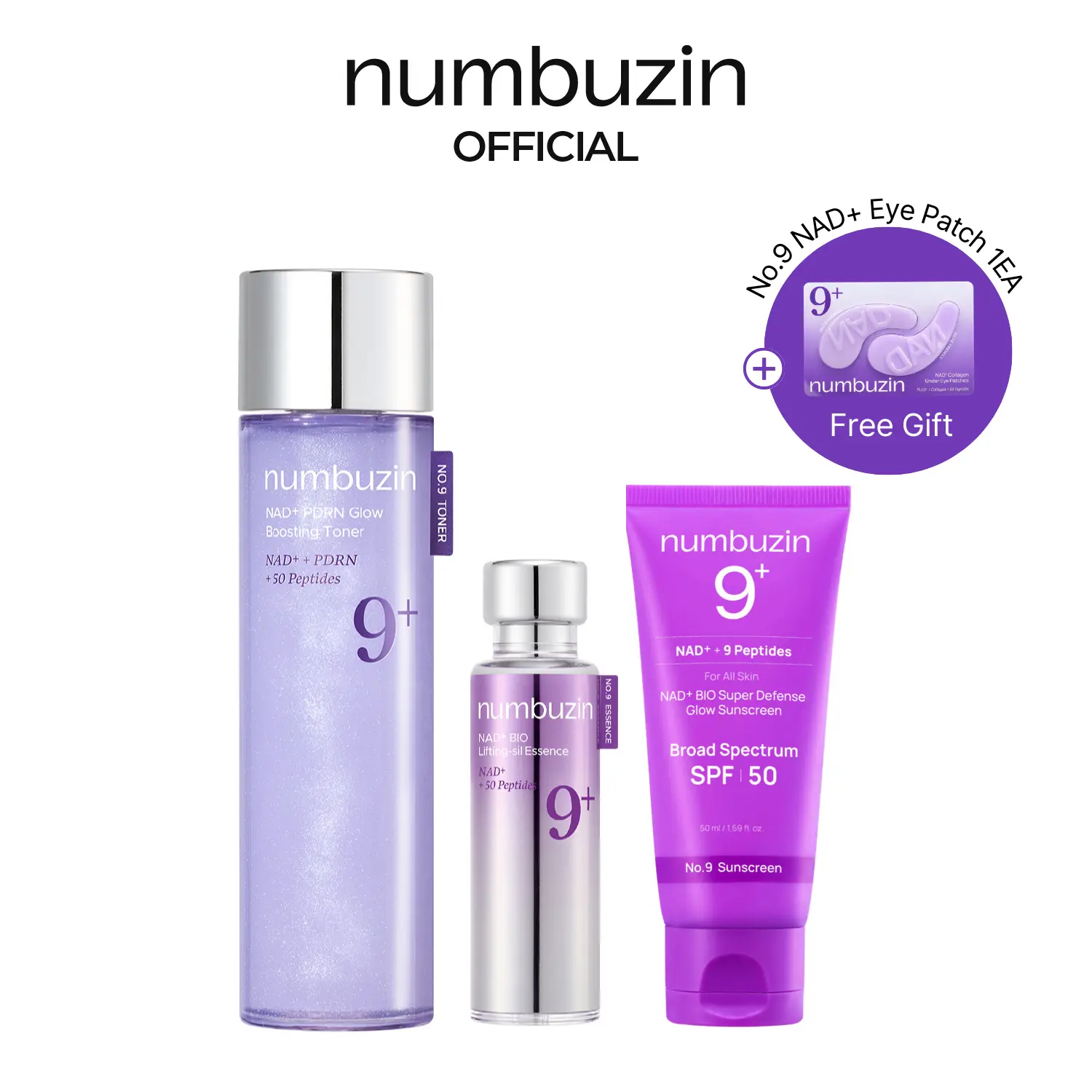 ·No.9 NAD+ PDRN Toner + No.9 NAD+ Peptide Essence + No.9 NAD+ Sunscreen