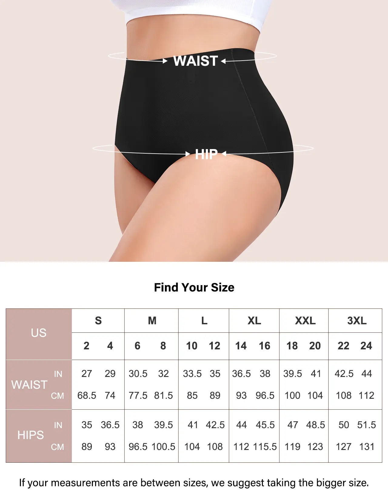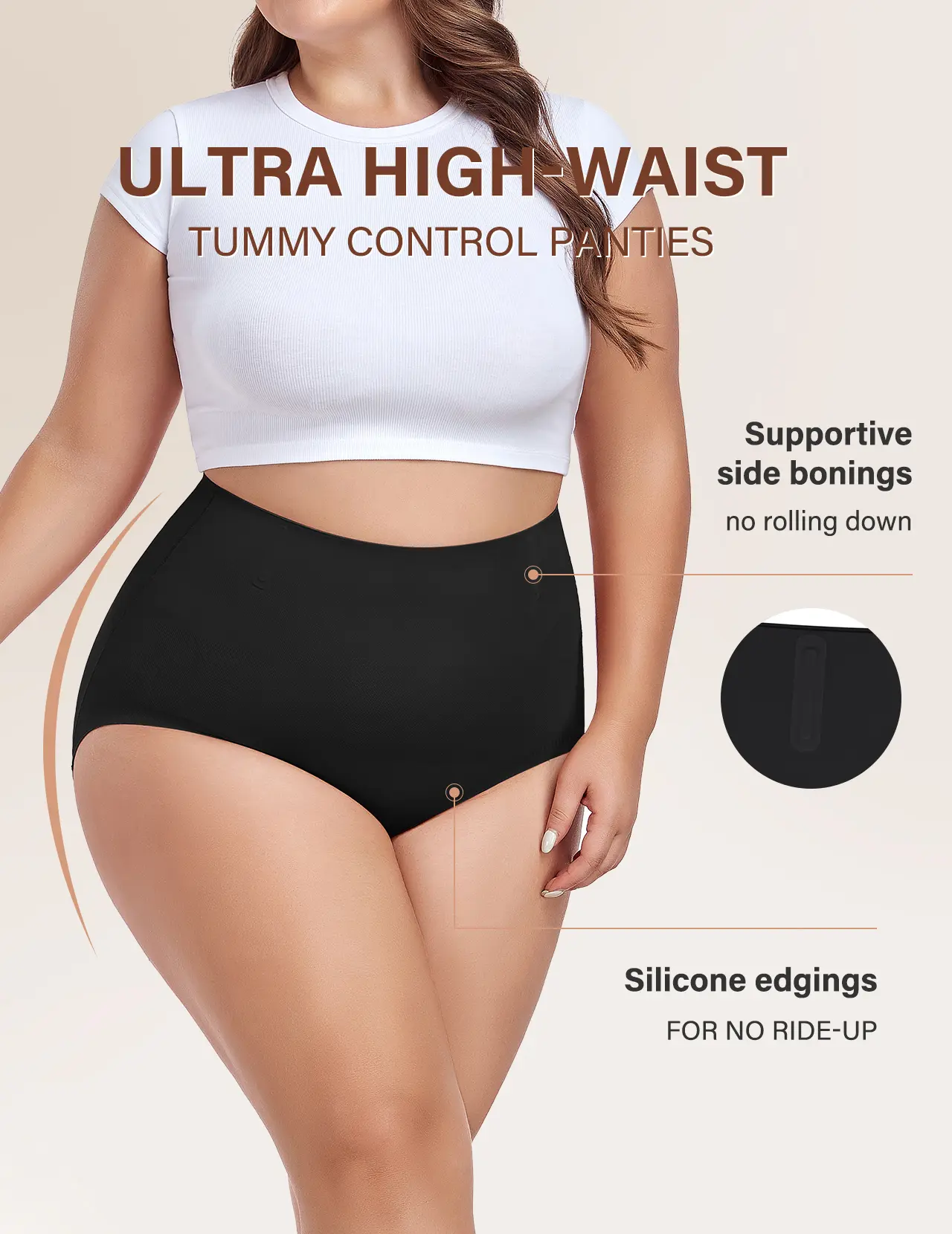 Control-top design: Flexible side bonings in the front and back offer extra support to keep your shape without rolling down.