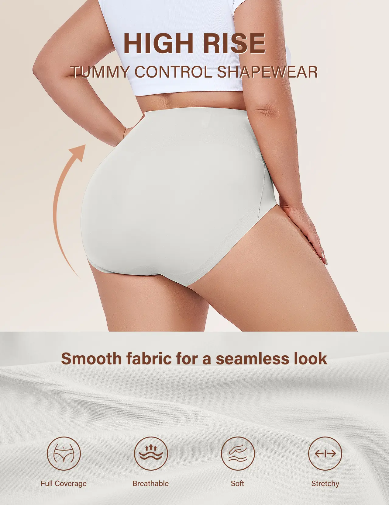 5. No Curling Tummy Control Panties for Women Ultra High Waisted Compression Body Shapewear Soft Seamless Fabric Leg Smooth Minimalist Basic