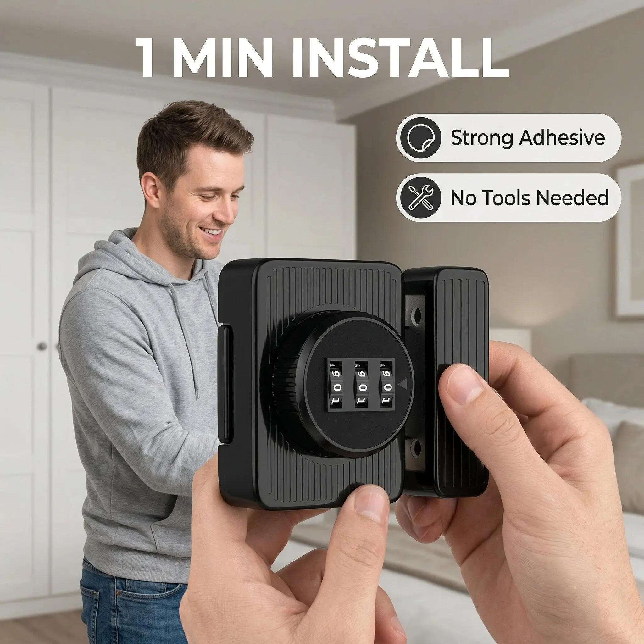 No-Drill Code Lock Bolt Latch Reversible Cabinet Drawer Storage Door Security Lock for Bedroom