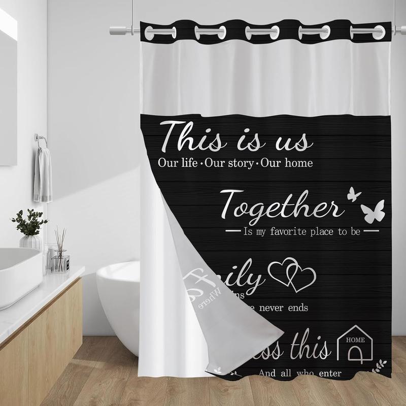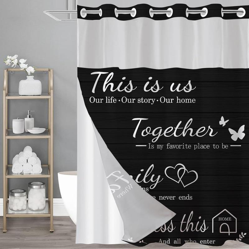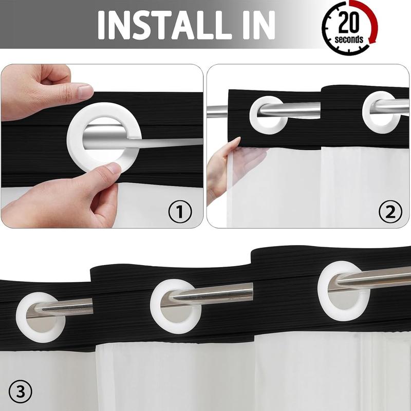 I really like the shower curtain, easy to put on, I like the built in shower liner too very impressed with it overall.