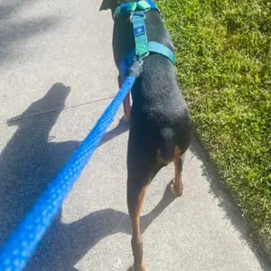 This is the second harness I purchased. I have the blue and pink one and now the blue and green, in addition to three sweatshirts and a raincoat. What can I say, my Dobie is a Diva. And, I love the colors and quality of your items.