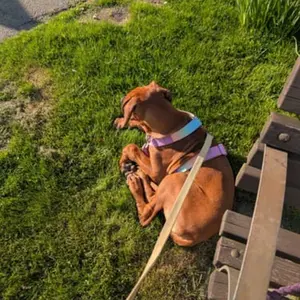 After our 7 month pup grew out her second harness and was pulling a lot on her lead, we decided to bite the bullet and pay a little more for a harness. Oh my goodness!! This has been an absolute game changer! No more pulling and from day one of wearing this collar and harness set, Bluebell Belly has been walking beautifully by my side! Great purchase and we will definately be ordering from you guys again! We also have a lovely hoodie and jumper for the winter months which she just looks adorable in!