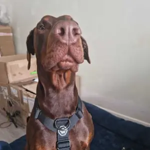 Hi, first of all miss Lauren S. who gave a review - dear miss Lauren, you put the harness the other way around ?? I did the same at first :) look at my dobie - note the front logo on his chest, u put it on your dogs back.
