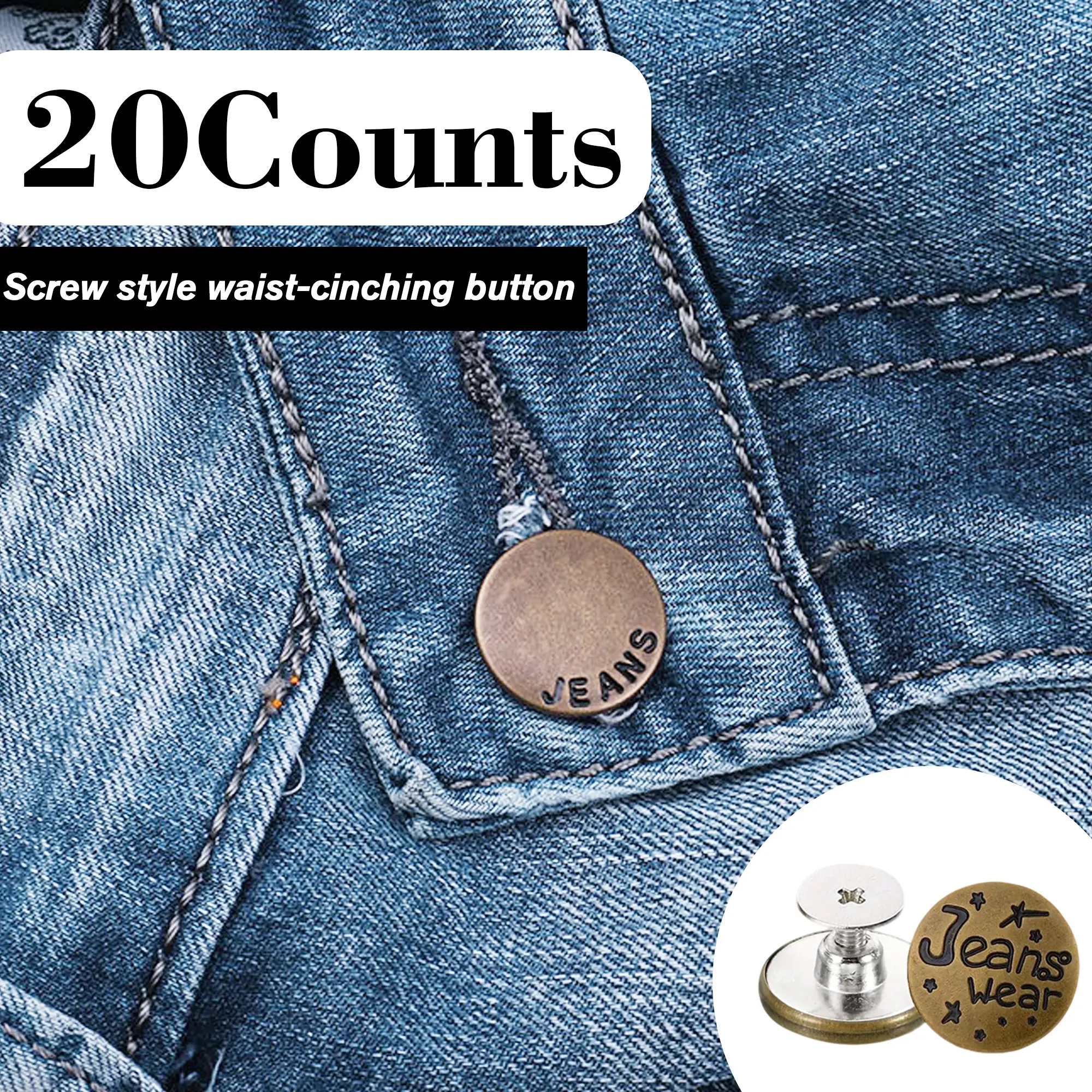 Package Contents - The pants buttons replacement kit includes 20 counts random styles jeans buttons, a lightweight screwdriver and a storage box to fully meeting your daily needs