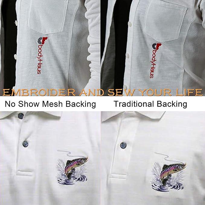 This no show mesh cutaway stabilizer offers permanent support for embroidery projects. It’s ideal for light-colored fabrics, eliminating the backing from showing through. Its semitransparent, soft, and sheer texture ensures a seamless finish. Perfect for stretchy knits, it eliminates bulk and stiffness. Use it for chest logos, pique knits, Polo shirts, T-shirts, infant items, microfiber apparel, silk, and satin.