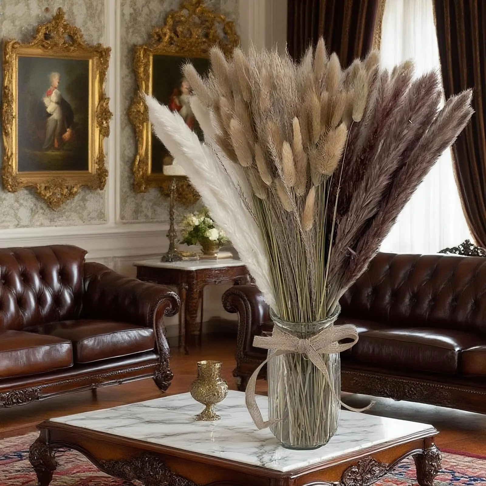 • 15 Small Natural Pampas: Soft, earthy tones for a classic boho feel.• 50 Natural Bunny Tails: Fluffy and fun, adding texture to any vase.• 15 Small White Pampas: Clean, bright pops to balance natural hues.• 20 Snowgrass (Floating Dust): Delicate strands for a dreamy, airy look.