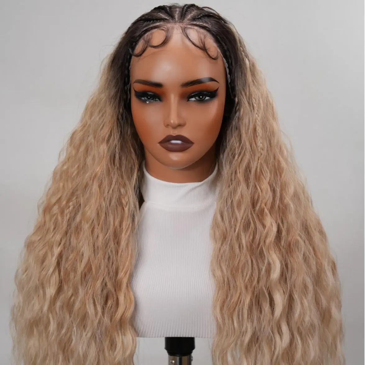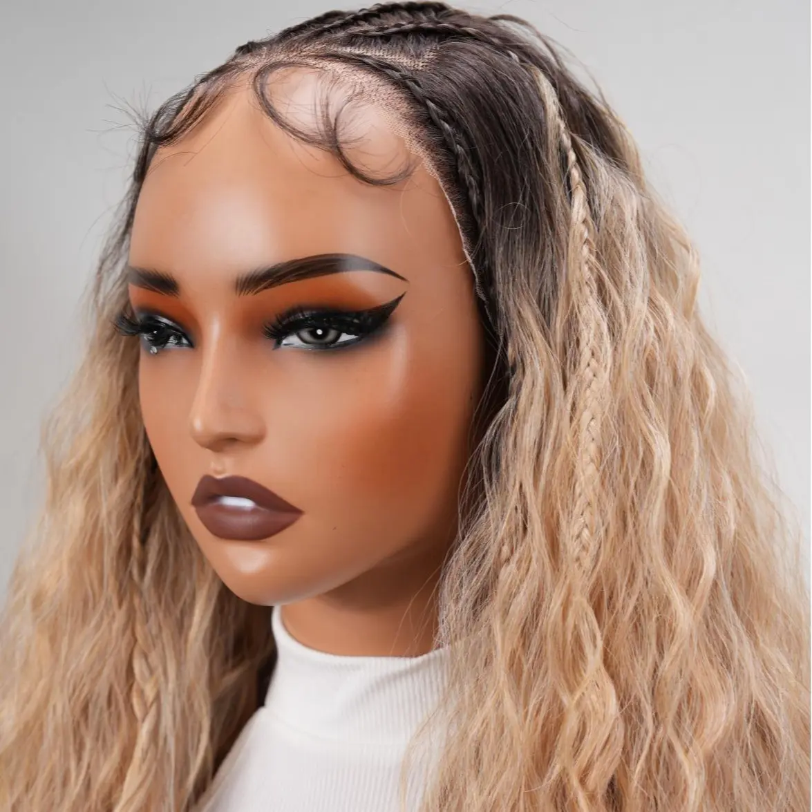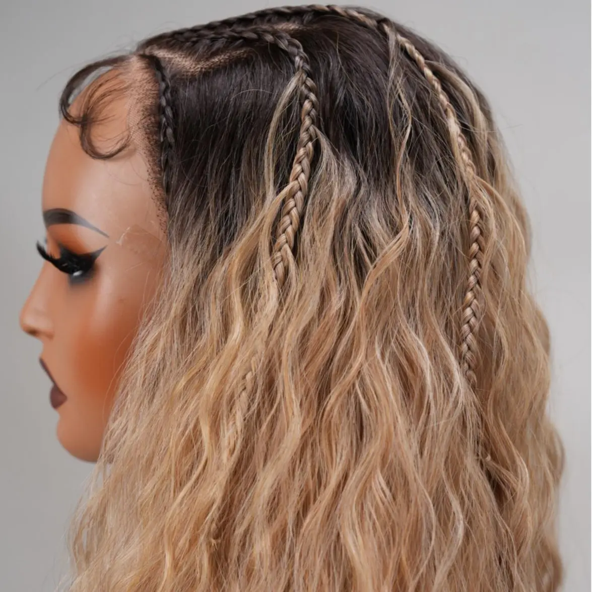 5. NOBLE 25 Inch Brown-gold gradient braided wavy curls with lace detailing for long waves