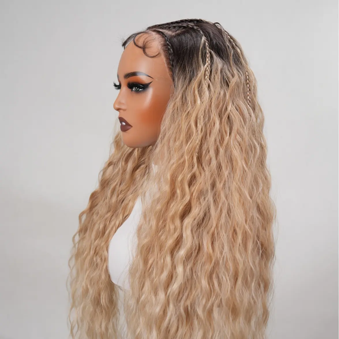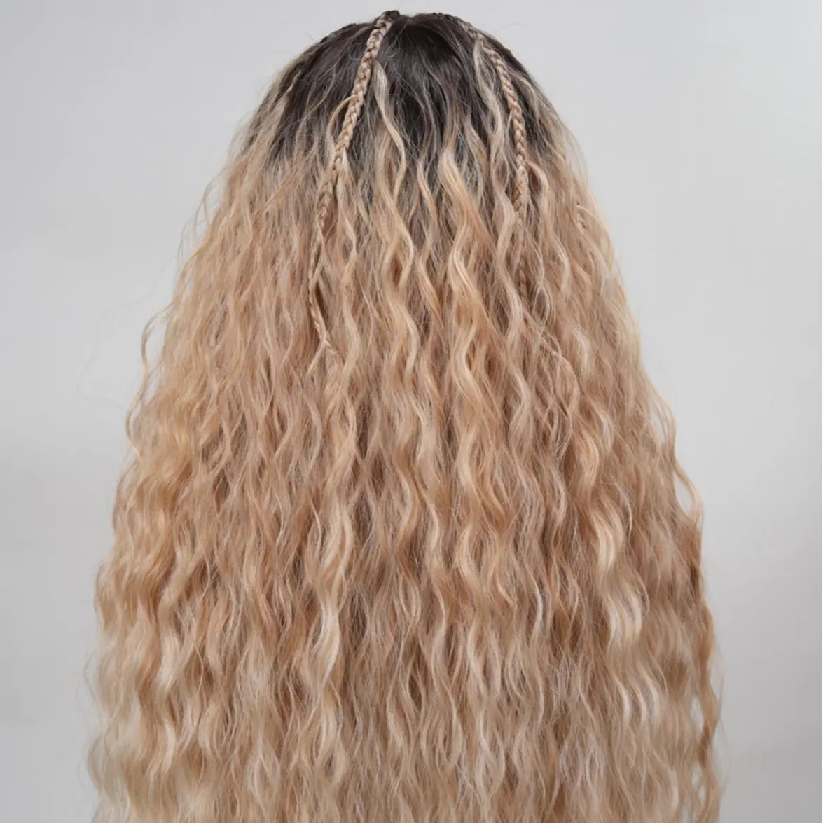 NOBLE 25 Inch Brown-gold gradient braided wavy curls with lace detailing for long waves