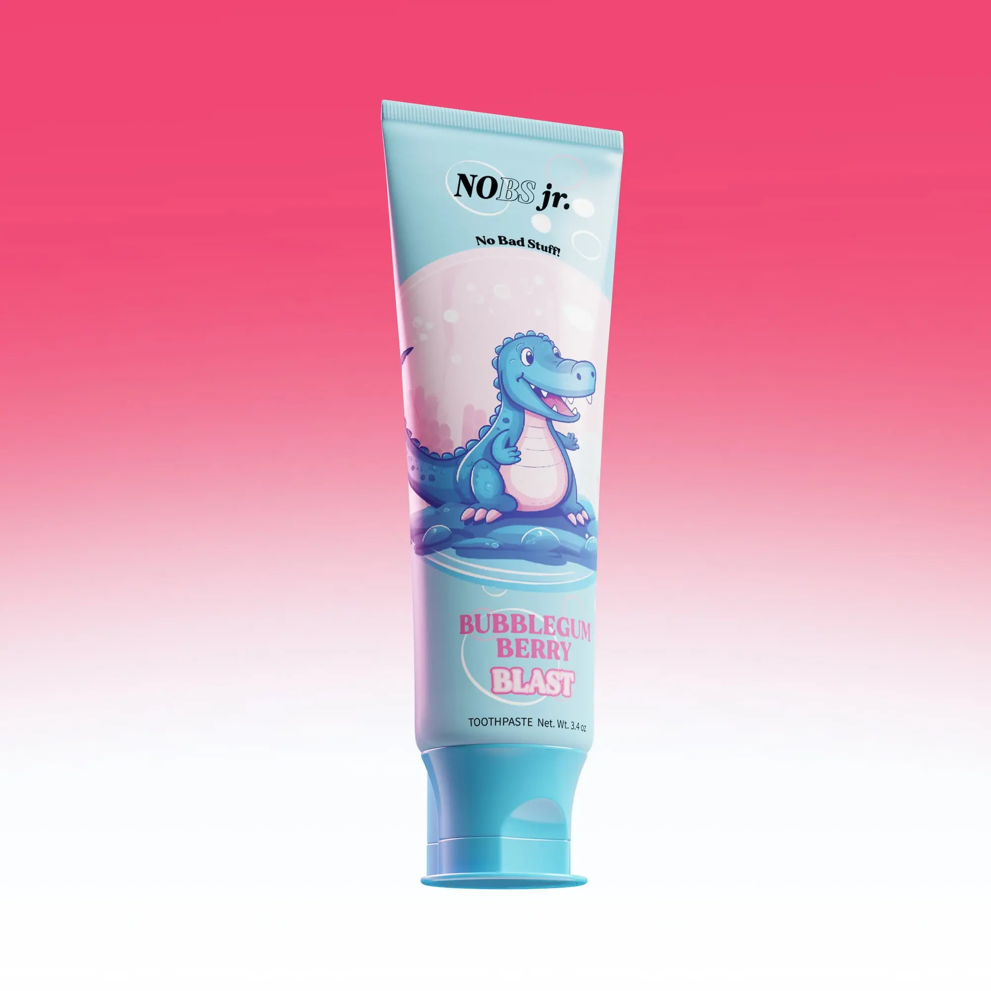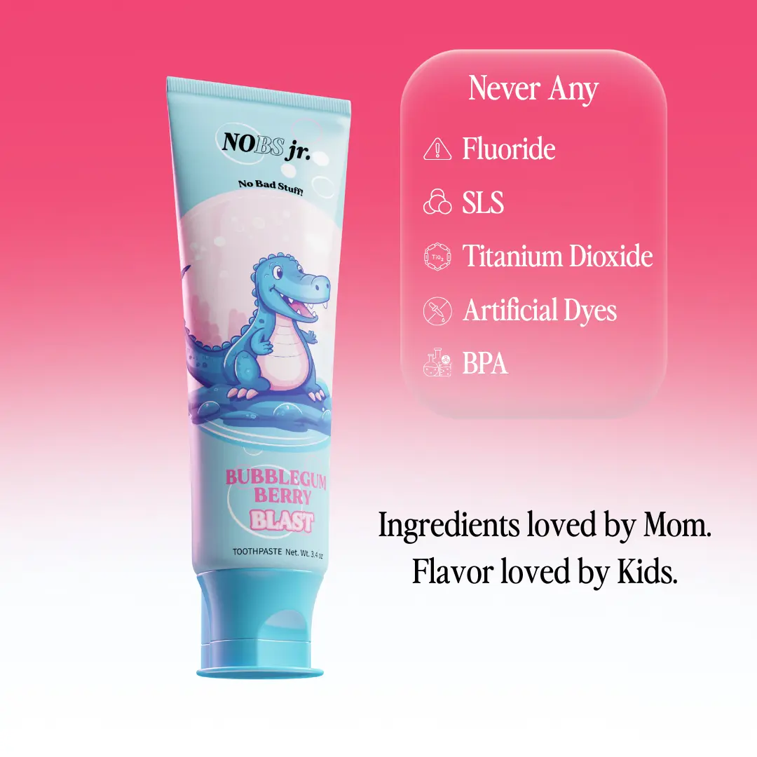 NOBS Jr. Berry Bubblegum Blast is designed for the littlest smiles, offering an exciting bubblegum flavor and a blend of nature-derived ingredients to make brushing an enjoyable and healthy experience for your children.